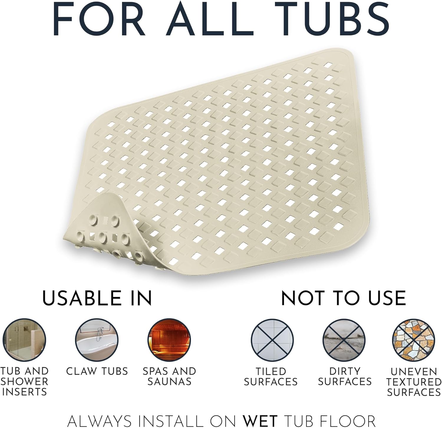 Homerella Anti Slip Shower Mat | Anti Mold Non Slip Bathtub Mat for Inside Shower | Square Floor Shower Mat 21 x 21 inch with Suction Cups for Grip & Hooks Hanging and Quick Drying | Machine Washable