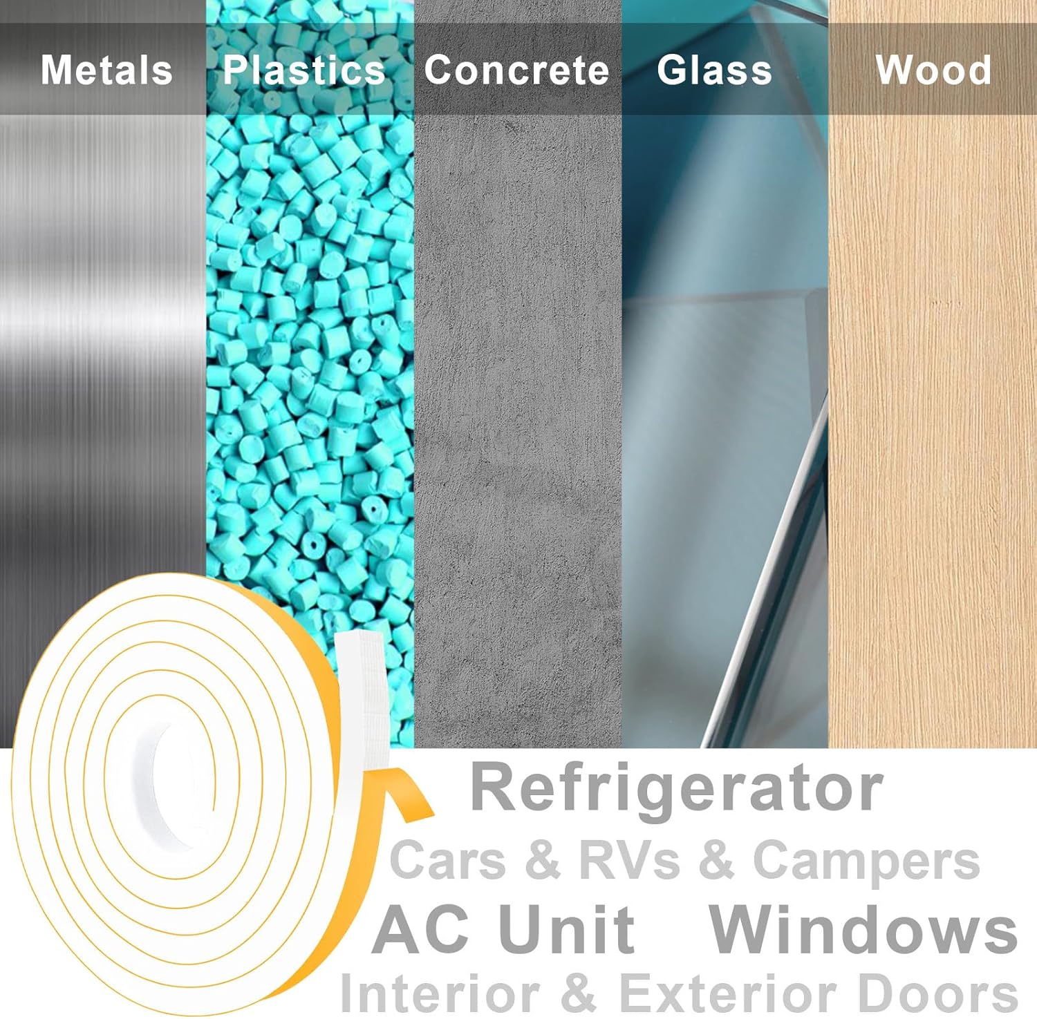 - 🟠WIDE APPLICATION-Trisiki's rubber weather tape is a tough, durable self-stick tape with minimal compression and can help prevent rattles, vibrations and squeaks. It's widely used as a weatherstrip, or as a gasket or to cushion and stabilize major appliances, such as doors, windows, furniture, electrical cabinets, speakers, toys, handicrafts, sports equipment, vents, air conditioners, plumbing, hvac. Plus, on cars, trucks and boats