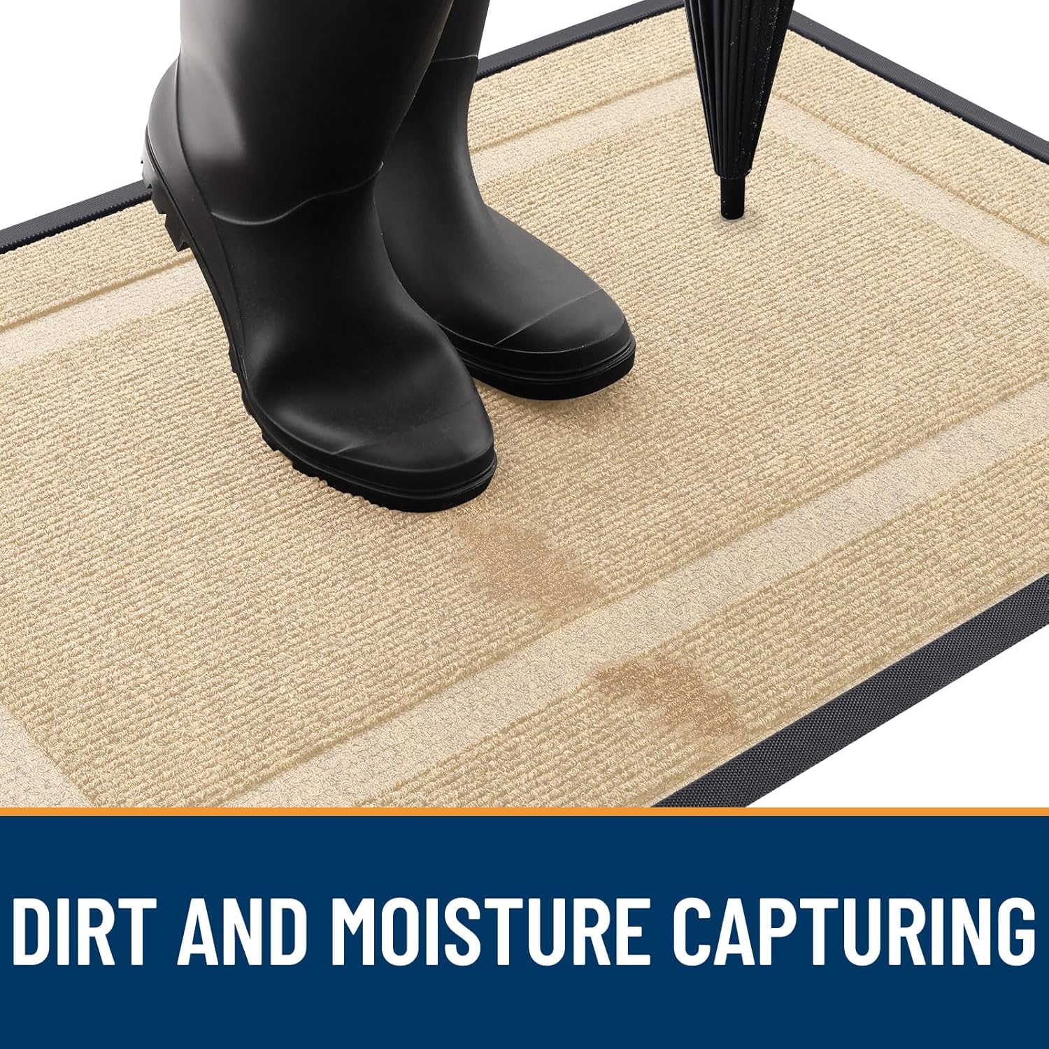 OLANLY Front Door Mat Indoor Outdoor Entrance, Waterproof All-Season, All-Weather Doormat, Sturdy Natural Rubber, Fade Resistant, Low Profile, Easy Clean Patio Porch Entryway Mat, 36x24, Beige