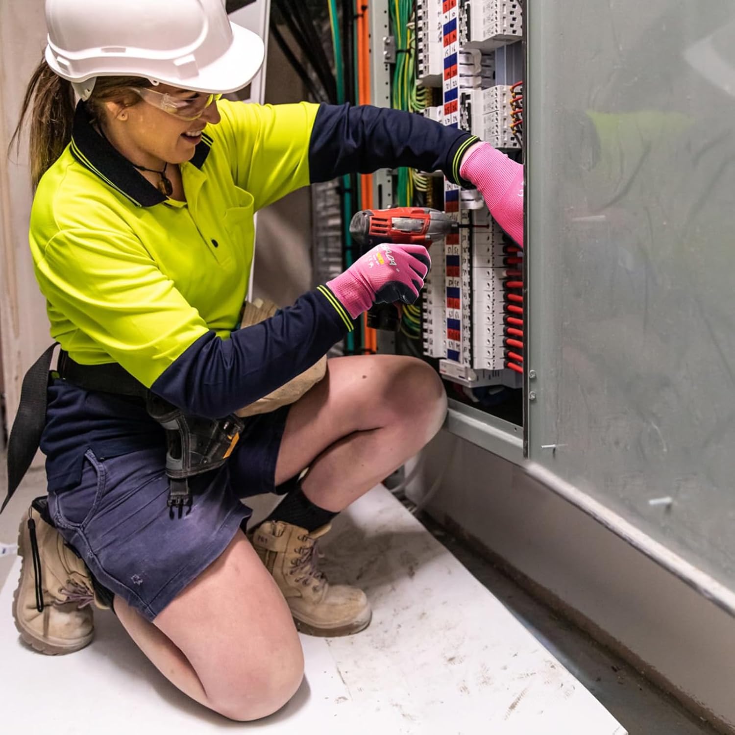 - HI VIS GLOVES for WOMEN: Knitted with high visibility pink material, Coated with black PU. Designed as adult gloves, perfect for women's work gloves. Lightweight, stretchable, breathable and durable. Durable grippy coating withstands extensive abrasion testing, ensuring long-lasting performance. 12-pair bulk pack for extra convenience and always have backup gloves for work