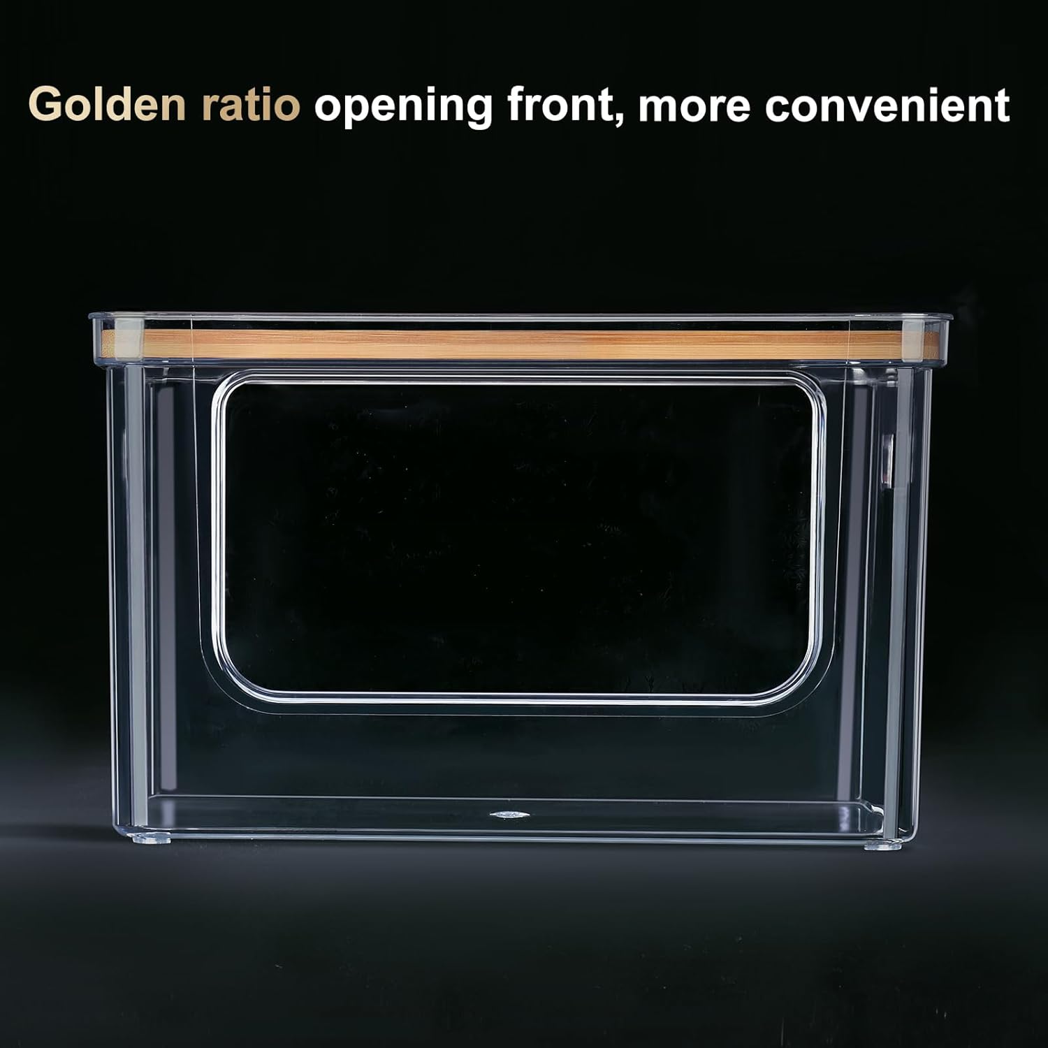 Hudgan Stackable Storage with Bamboo Top for Laundry Room Organization, Extra Large Trash Bag/Garbage Bag Dispenser, Under Sink Organizer, Pantry Organizers