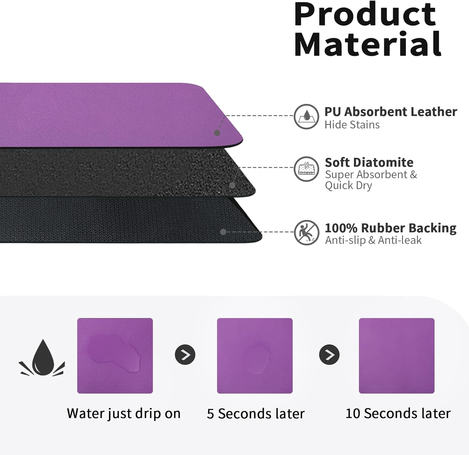 Dish Drying Mat for Kitchen Counter, Heat Resistant Drainer Mats with Non-slip Rubber Backed, Hide Stain Kitchen Super Absorbent Draining Mat, Easy to Clean Dish Rack Pad, Purple 16"x20"