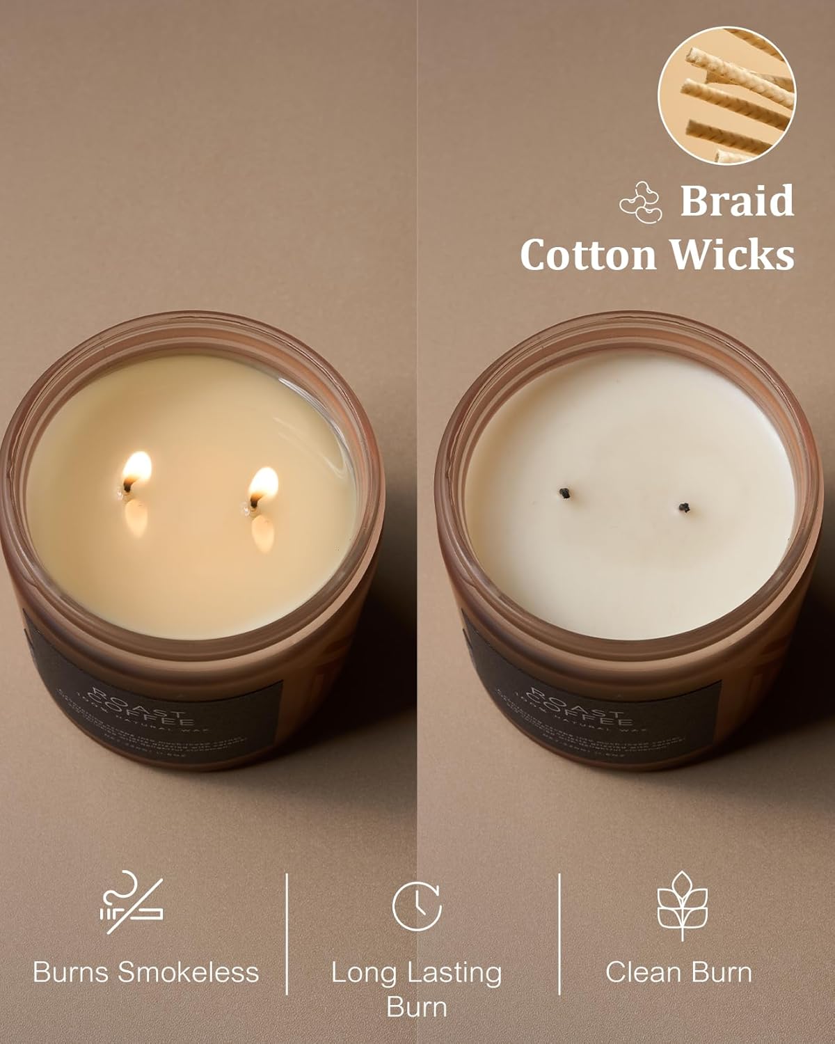 M&SENSE Coffee Candles Scented Strong, 2 Wick 11.6oz 70 Hours Burning Time Organic Natural Soy Wax Candle for Bedroom Kitchen Home Decor, Housewarming Gift for Men and Women