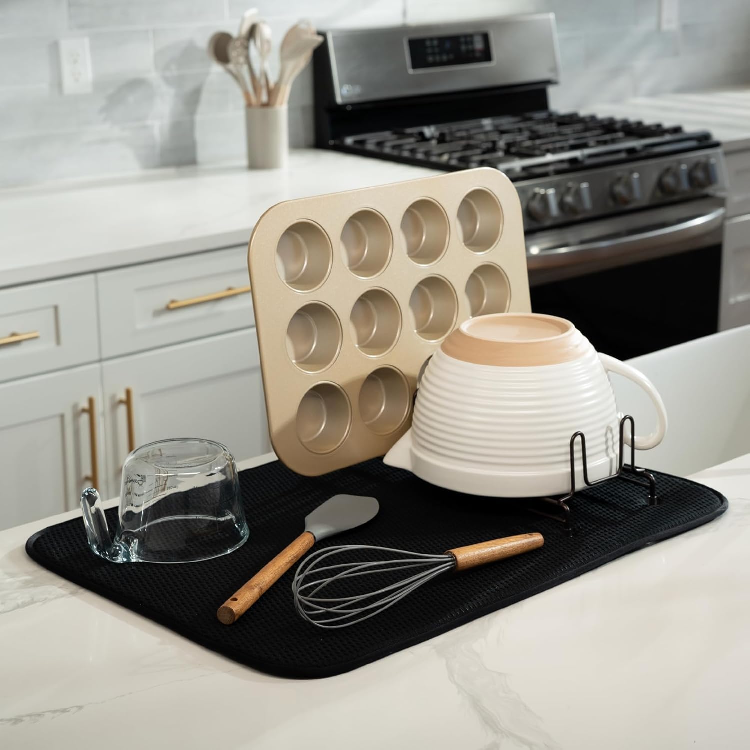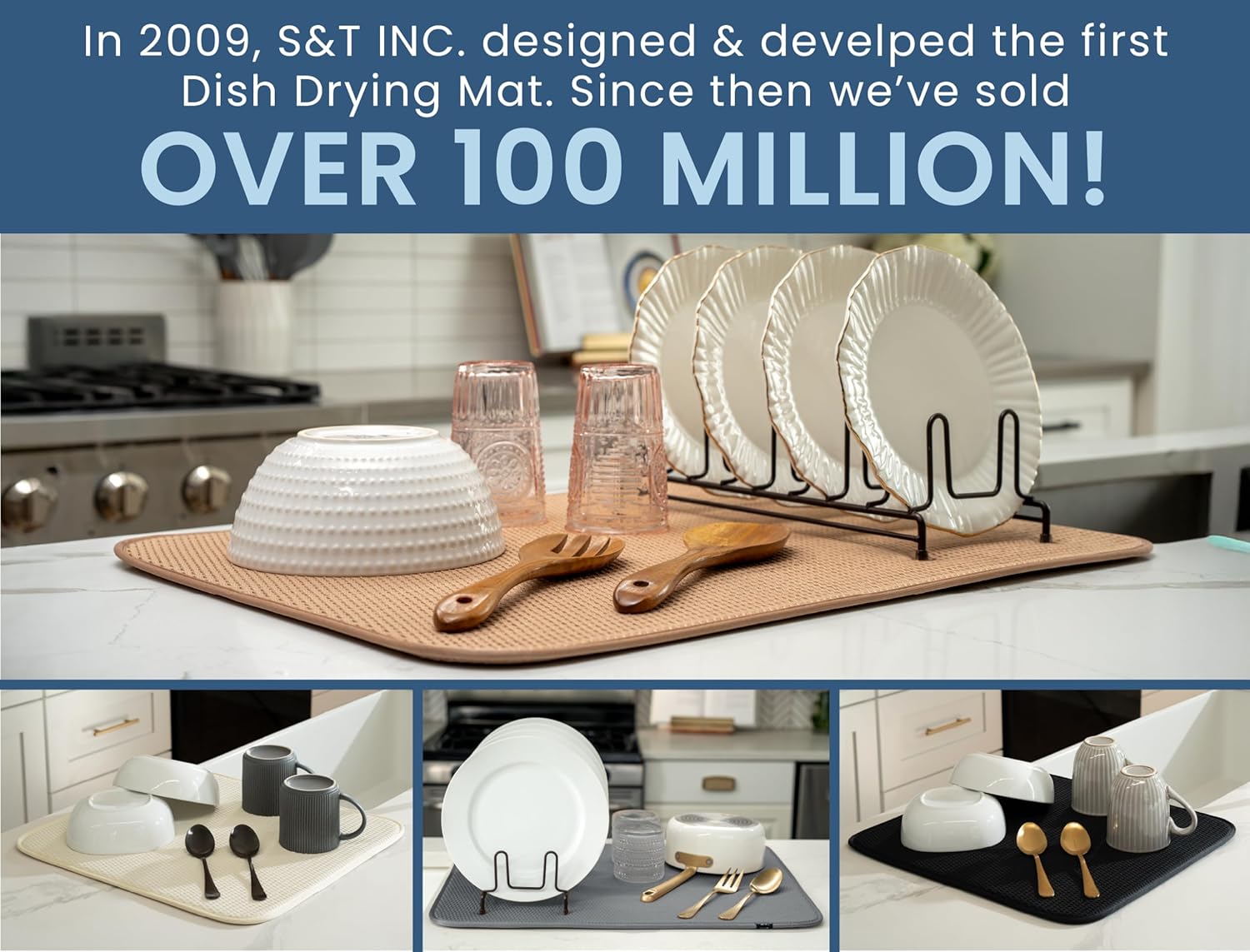 - One Envision Home by S&T INC. Microfiber Dish Dry Mat XL measuring 18 in. x 24 in.; kitchen mat for countertop absorbs up to 4 times its weight in water to keep your countertop dry, unlike a silicone dish drying mat