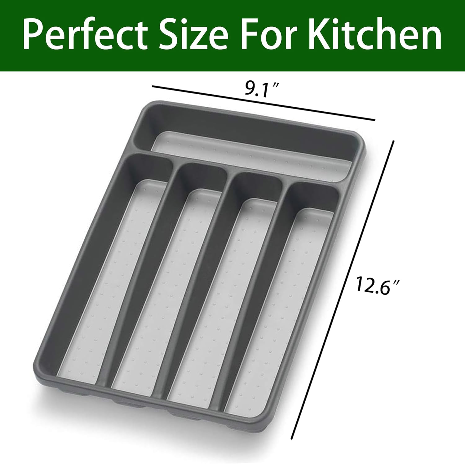 - â ăPerfect size for any drawerăMeasuring at 12.6ââL x 9.1âW x 1.8âH, our utensil organizer fits both standard and small-sized drawers. Its depth allows you to store multiple utensils in a single compartment without worrying about them getting tangled. Plus, the non-slip design ensures your cutlery stays secure during drawer use.