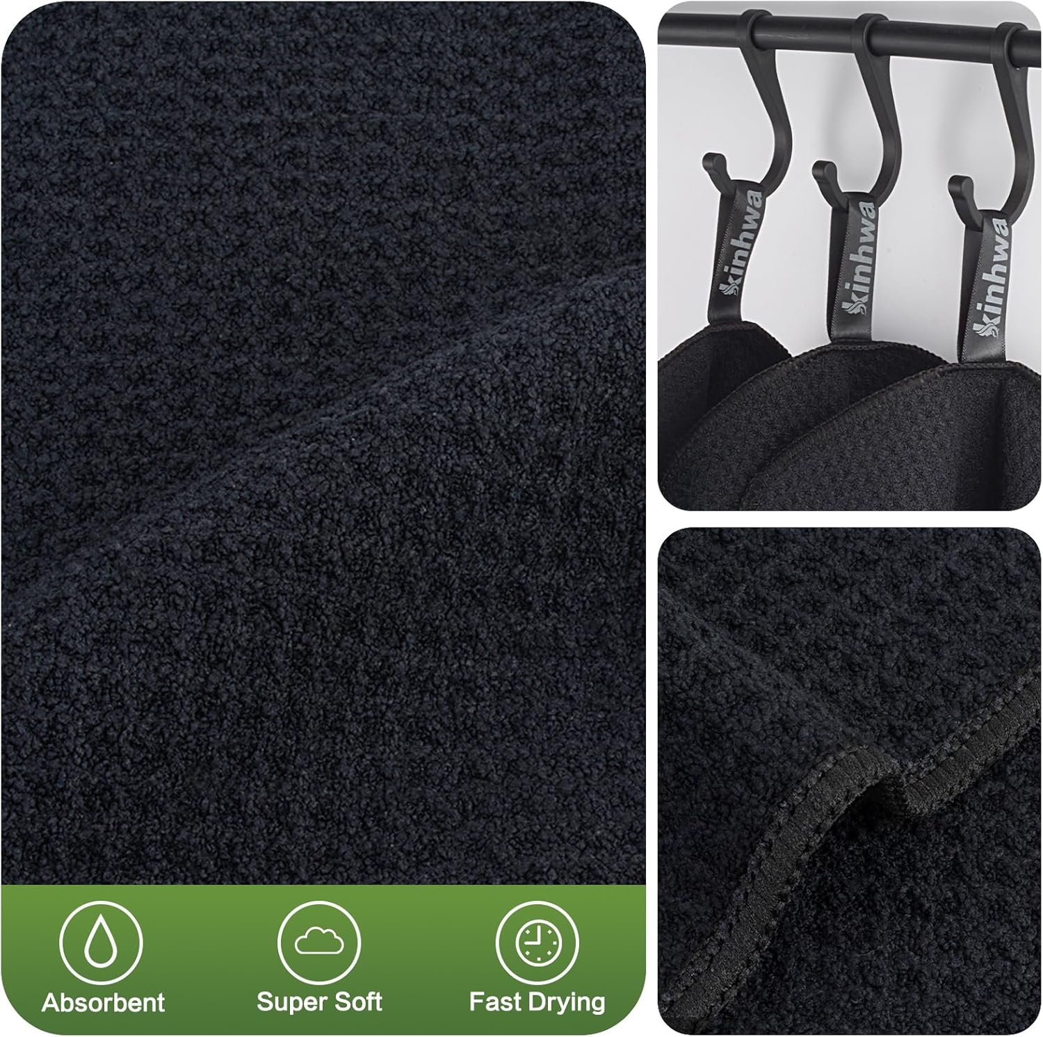 KinHwa Dish Cloths for Washing Dishes Kitchen Towels Microfiber Dish Towels for Kitchen Dish Towels Absorbent 8inch x 8inch 6 Pack (Black, 8in x 8in 10 PC)