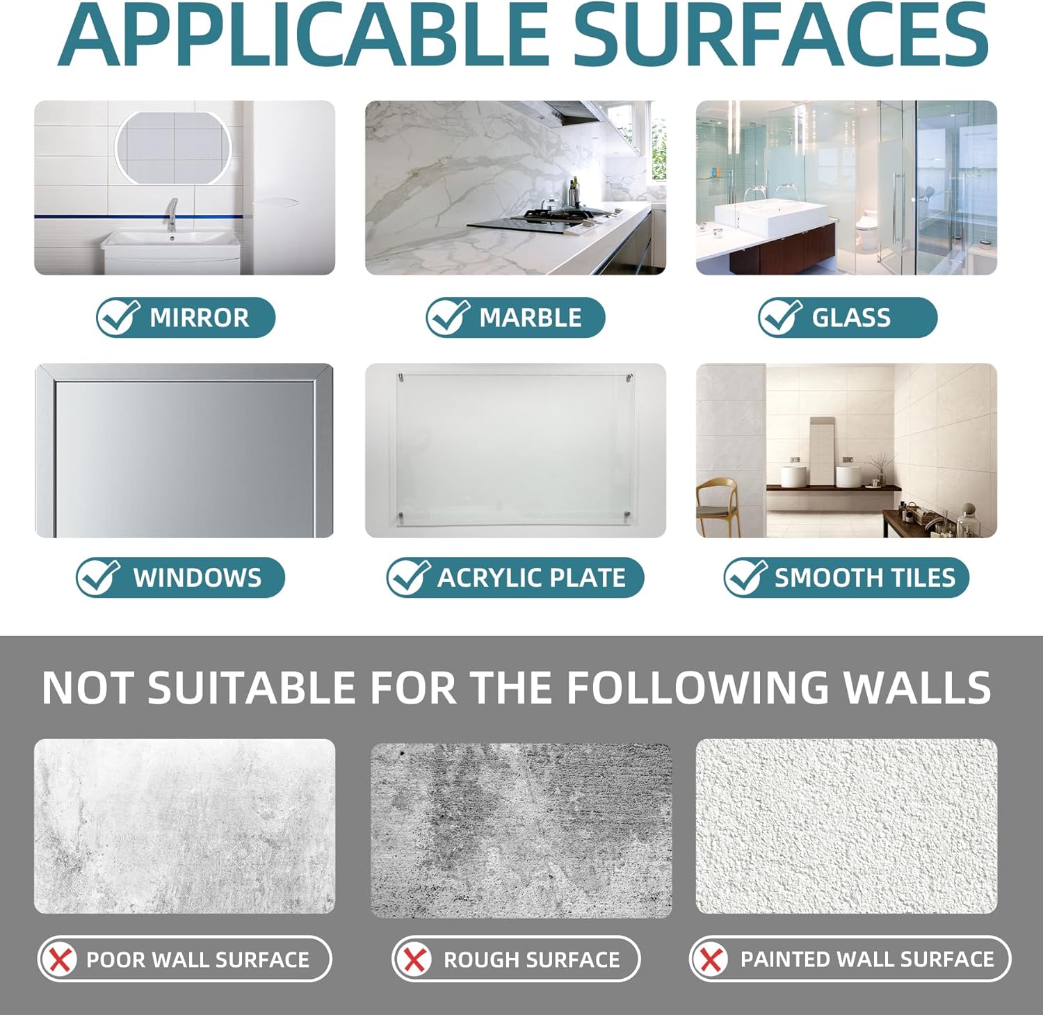 - 【Easy Install & Wildly Use】No holes, No Adhesive, No tools required. Simply lock the suction cup on any smooth surface in your home. Antimbee large suction utility hooks can firmly attach to glass, glass window, mirror, smooth ceramic, smooth stainless steel, polished board or other non-porous smooth surface, they can meet your different needs that very convenient to organize bath room, bathtub, kitchen, fridge, sink and so on