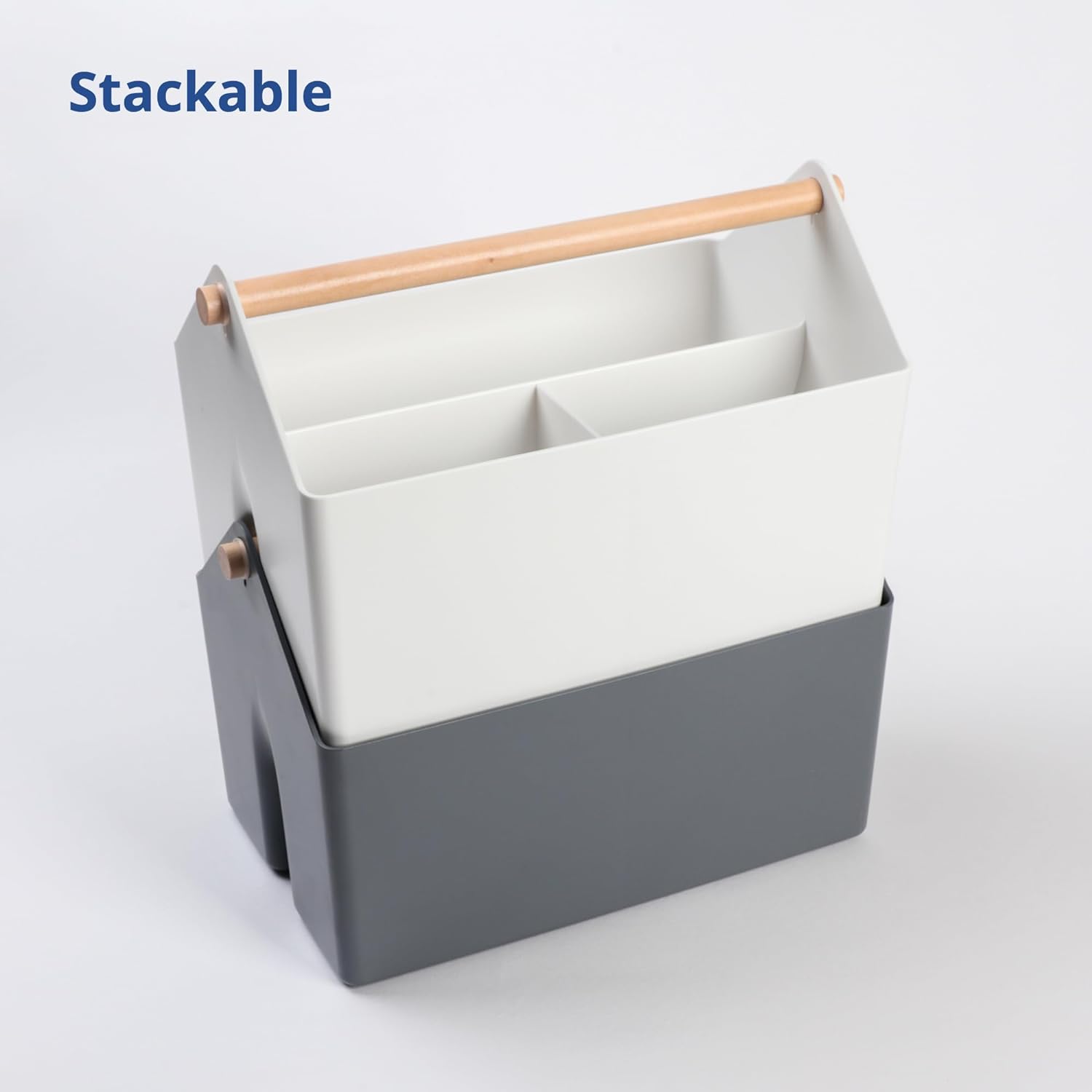 - Sturdy Wooden Handle - Features a sturdy wooden handle for easy carrying and access, making them an ideal kitchen caddy, kids art supply storage organizer, and makeup storage organizer.