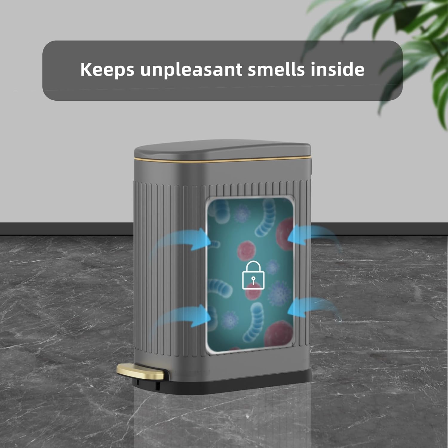 - 【COMPACT DESIGN】This 2.6 gallon step trash can is slim design, only 6.5 inch wide, the rectangular shape is the perfect size for inside cabinets, under counters, under sinks and other small spaces.
