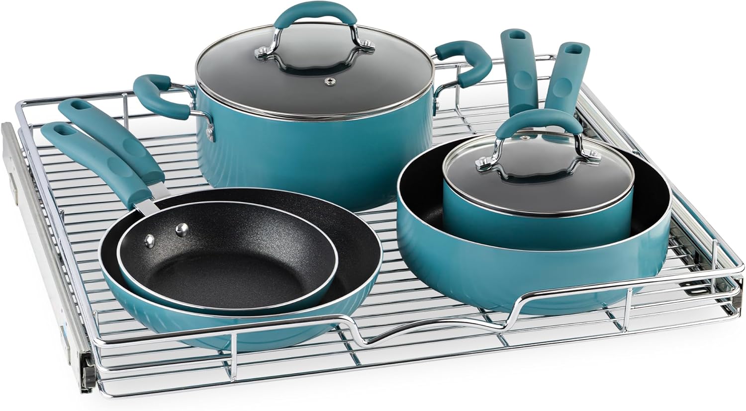 - SMOOTH SLIDE-OUT DRAWER: This kitchen cabinet roll out shelf is manufactured with a pull out system that slides out ultra-smooth. Other than other drawer organizers, our Pull Out Cabinet shelf slides out all the way, providing you with easy access.