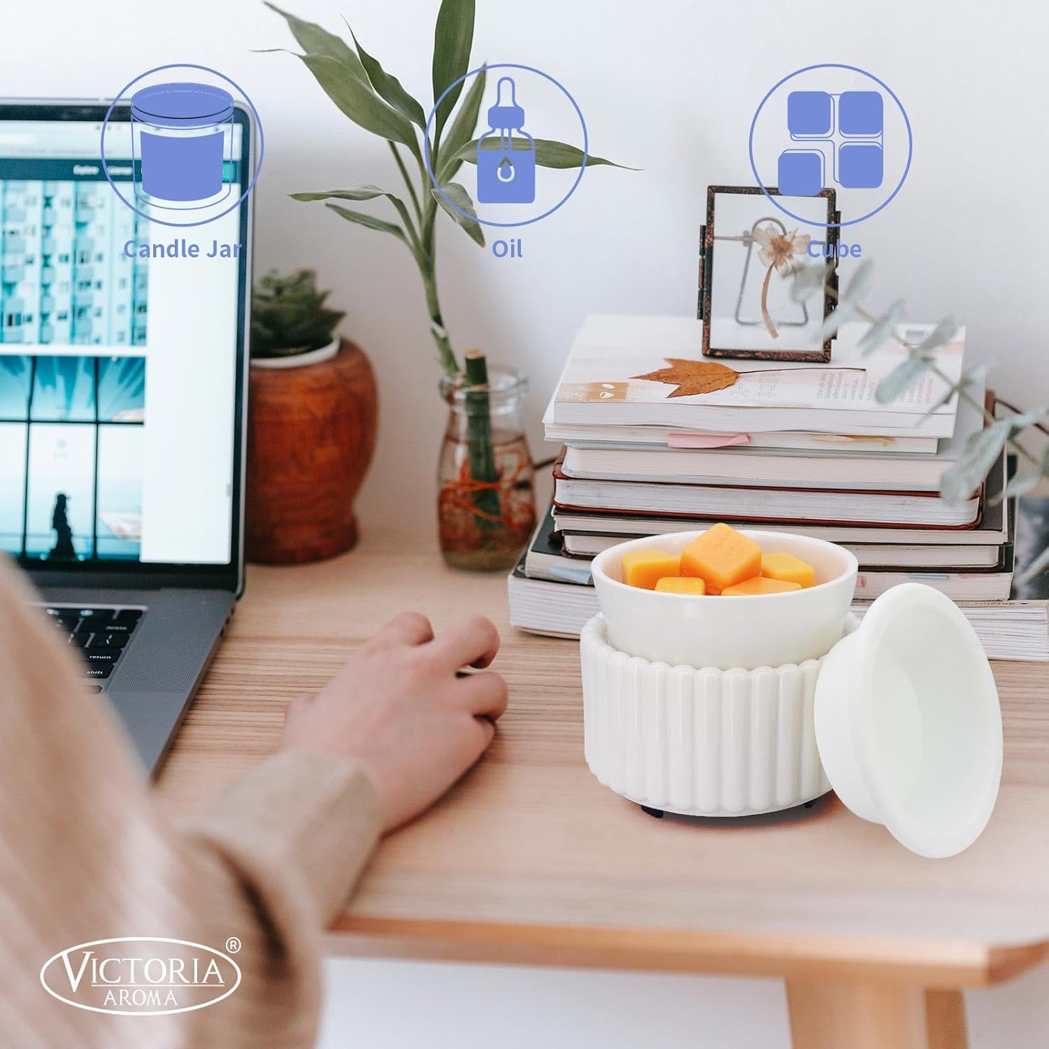 Ceramic Wax Melt Warmer with 1 pc Silicone Dish Candle Warmer for Scented Wax Electric Fragrance Burner for Home, Office, Bedroom - Gift & Décor