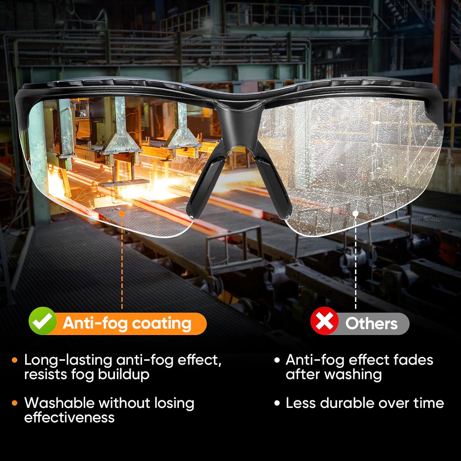 - [ANTI-FOG & UV PROTECTION] Equipped with scratch-resistant, anti-fog properties, these safety goggles utilize professional anti-fog coatings, maintaining clarity in diverse environments. Moreover, they effectively block 99.9% of harmful UV rays