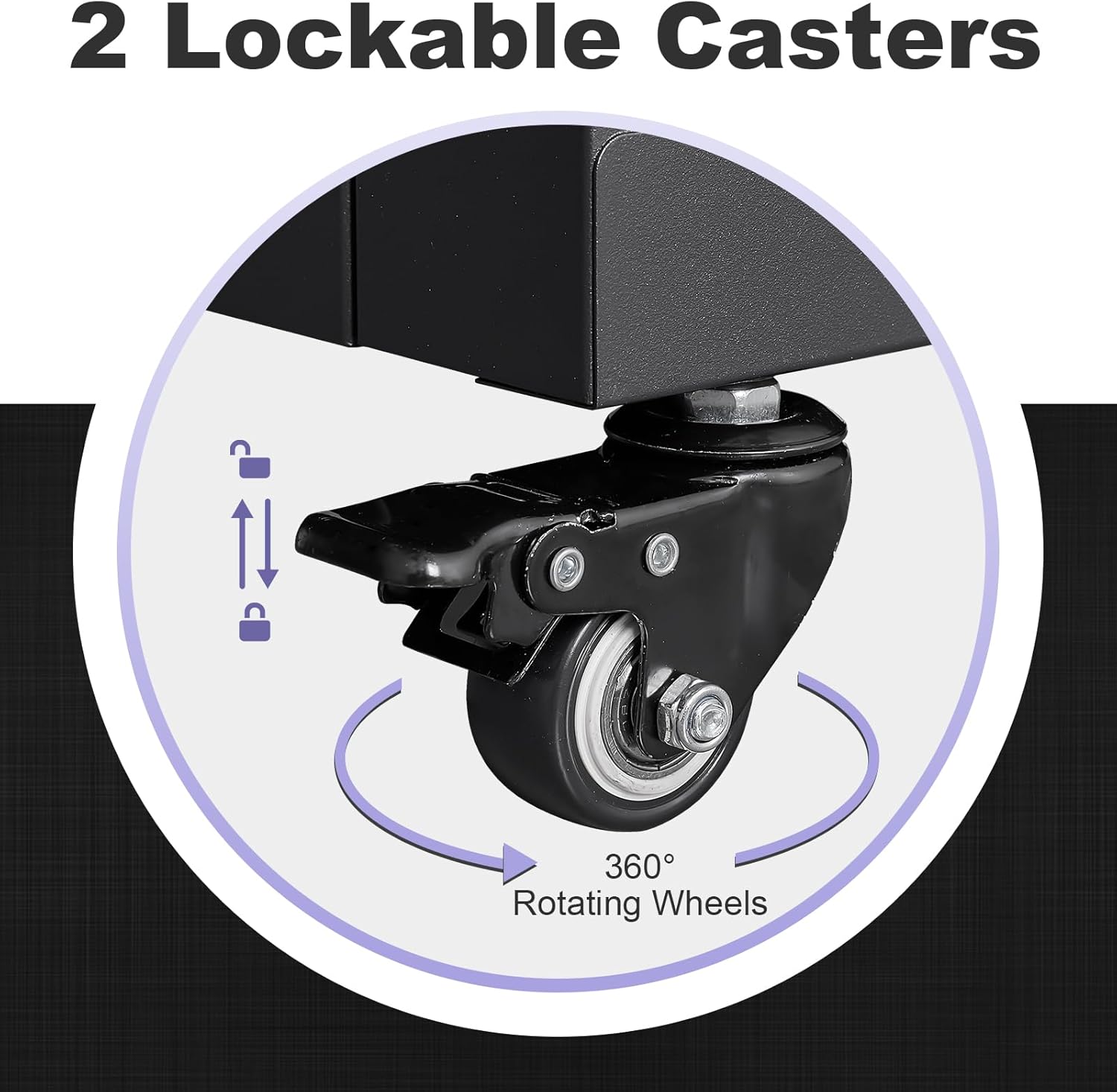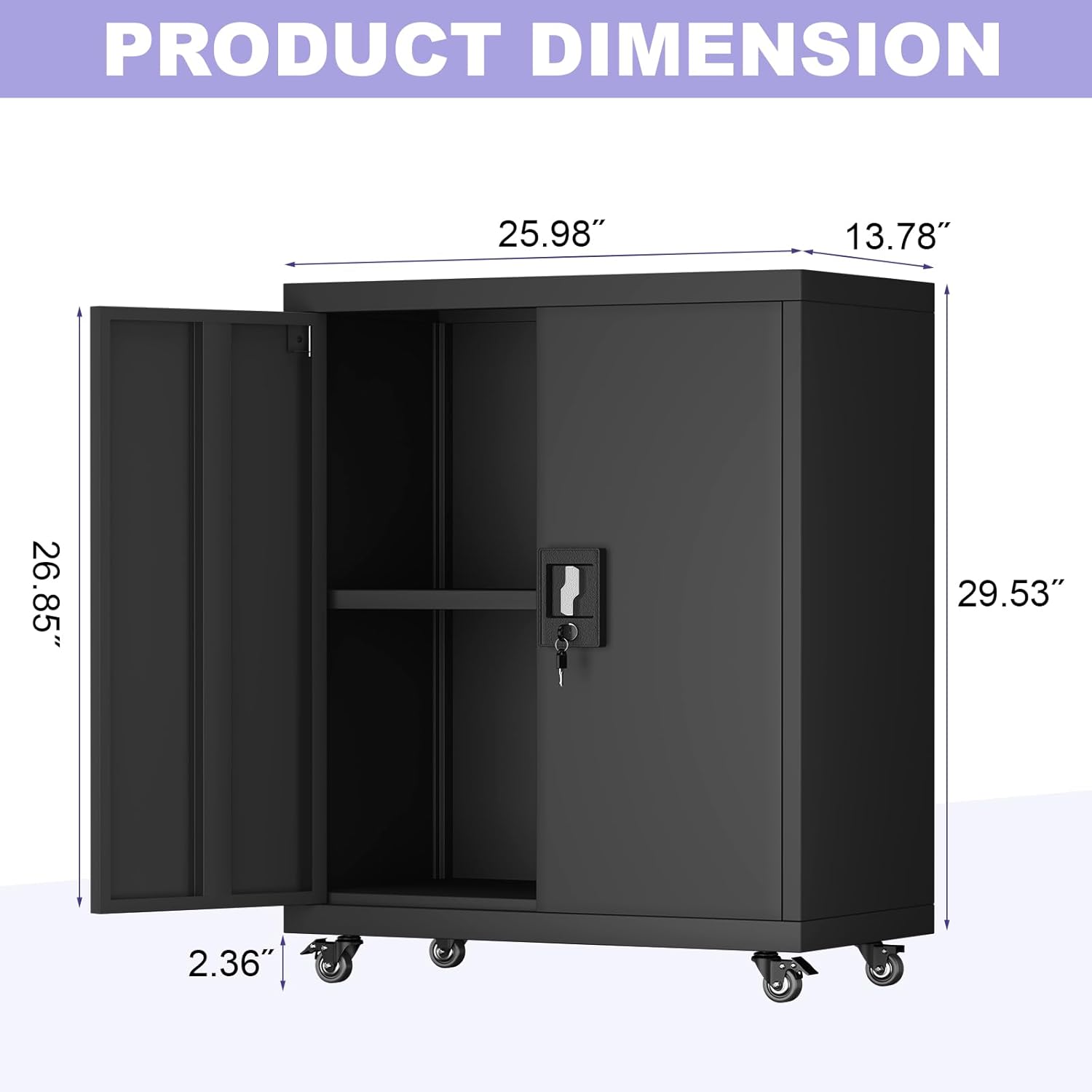 - [Freestanding Design]:Our steel storage cabinet equipped with four 360°rotation wheels, making it easy to move and convenient to use in different places. Two lockable wheels ensure the cabinet can be settled in position when needed and increasing stability.