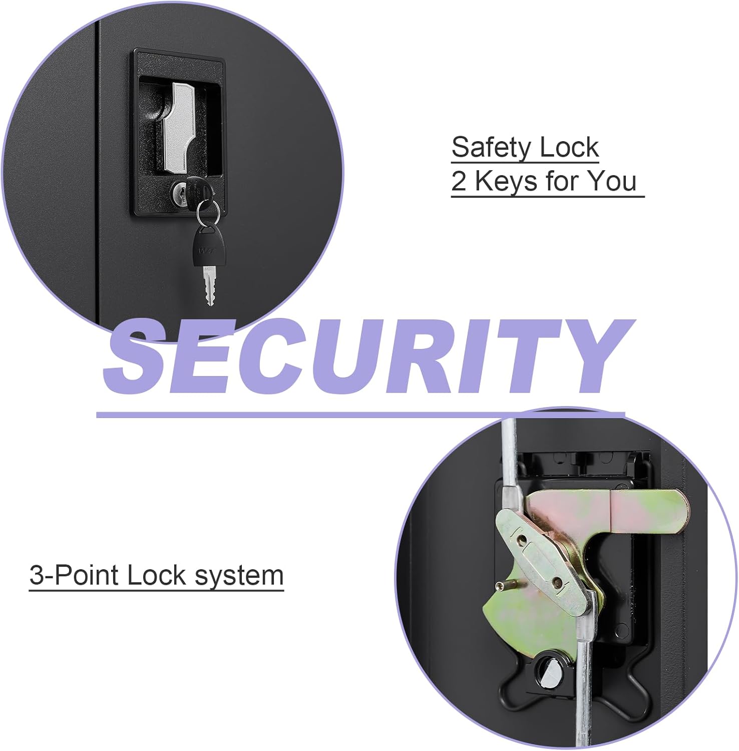 - [Key and Three-point Locking System]: Our metal lockers come with 2 lockable wheels and 2 keys, and the three-point locking system provides extra security, which doubles the storage of items and helps prevent unauthorized access, allowing users to store sensitive or important documents.