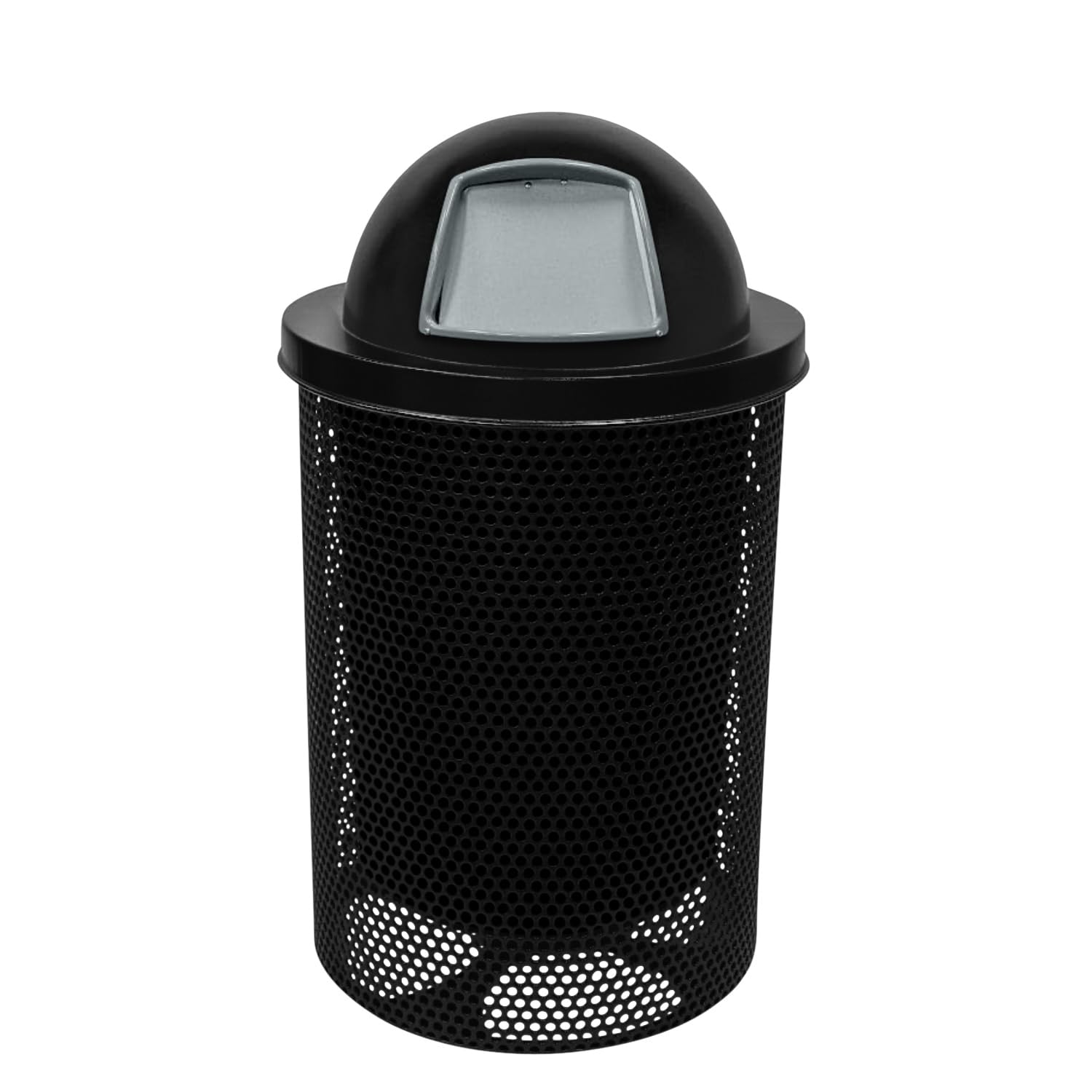 COATEDOUTDOORFURNITURE RDT-P-TXTBLK Heavy Duty Round Trash Receptacle with Dome Top, Liner Included, 32 Gallon, Textured Black, Made in America