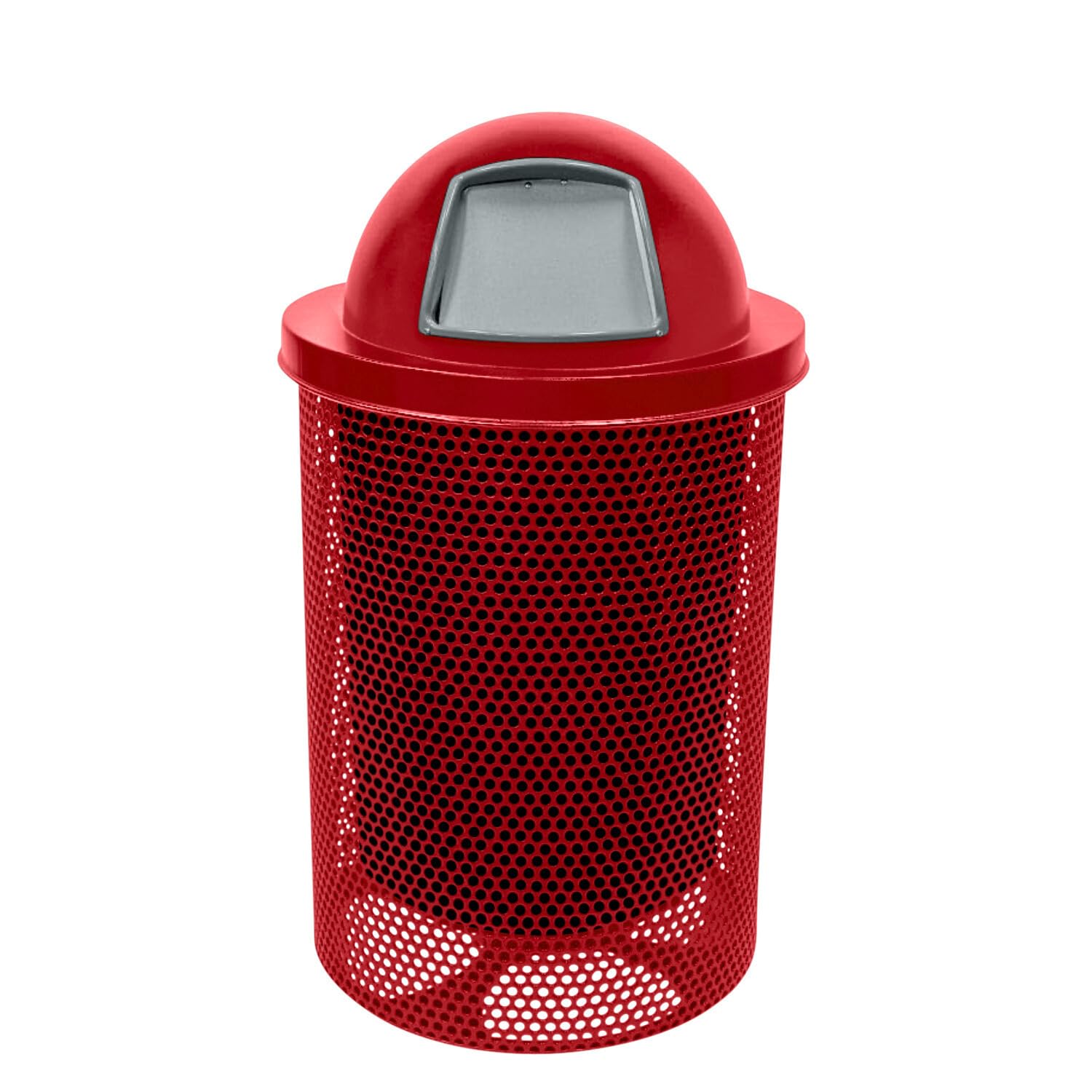 COATEDOUTDOORFURNITURE RDT-P-TXTRED Heavy Duty Round Trash Receptacle with Dome Top, Liner Included, 32 Gallon, Textured Red, Made in America