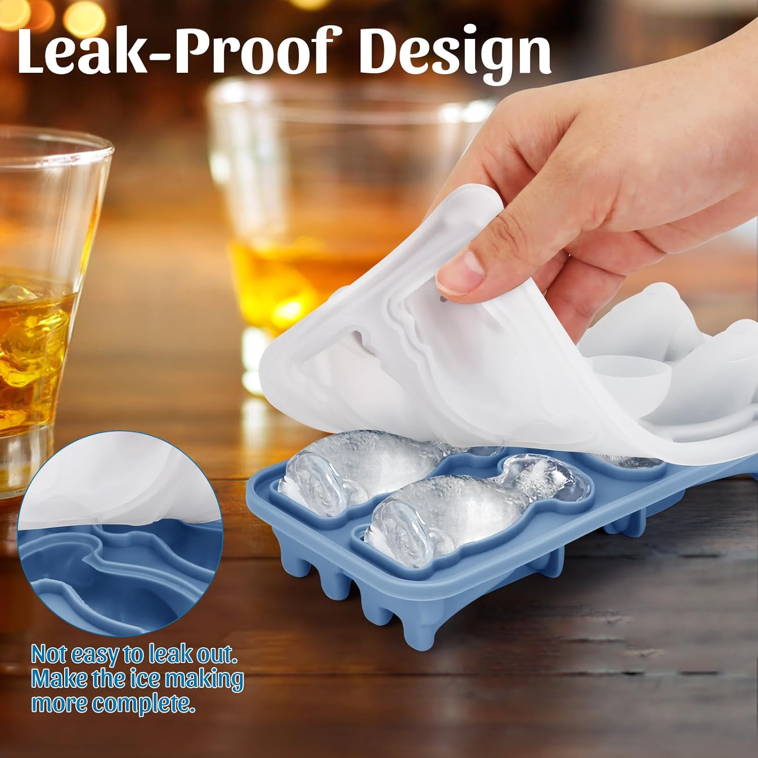 - Convenient Release and Cleaning:Crafted from TPE and silicone materials,effortlessly release the animal-shaped silicone ice cube molds.The individual compartment design makes removing large ice maker for freezer convenient,while the non-sticky soft surface ensures quick release.Made of sturdy rubber material,ice cube tray silicone compartment separates,making ice tray with lid easy to clean after use.The golden retriever large ice cube tray is dishwasher safe for quick cleaning.