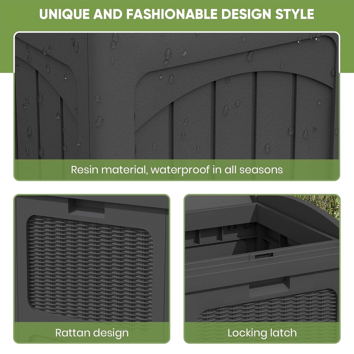 - Stylish appearance: With wicker design on the outside, it can be placed on any deck or patio, and can also be matched with other furniture.The wide range of colour variants gives you more options for integrating the bin into your home style.