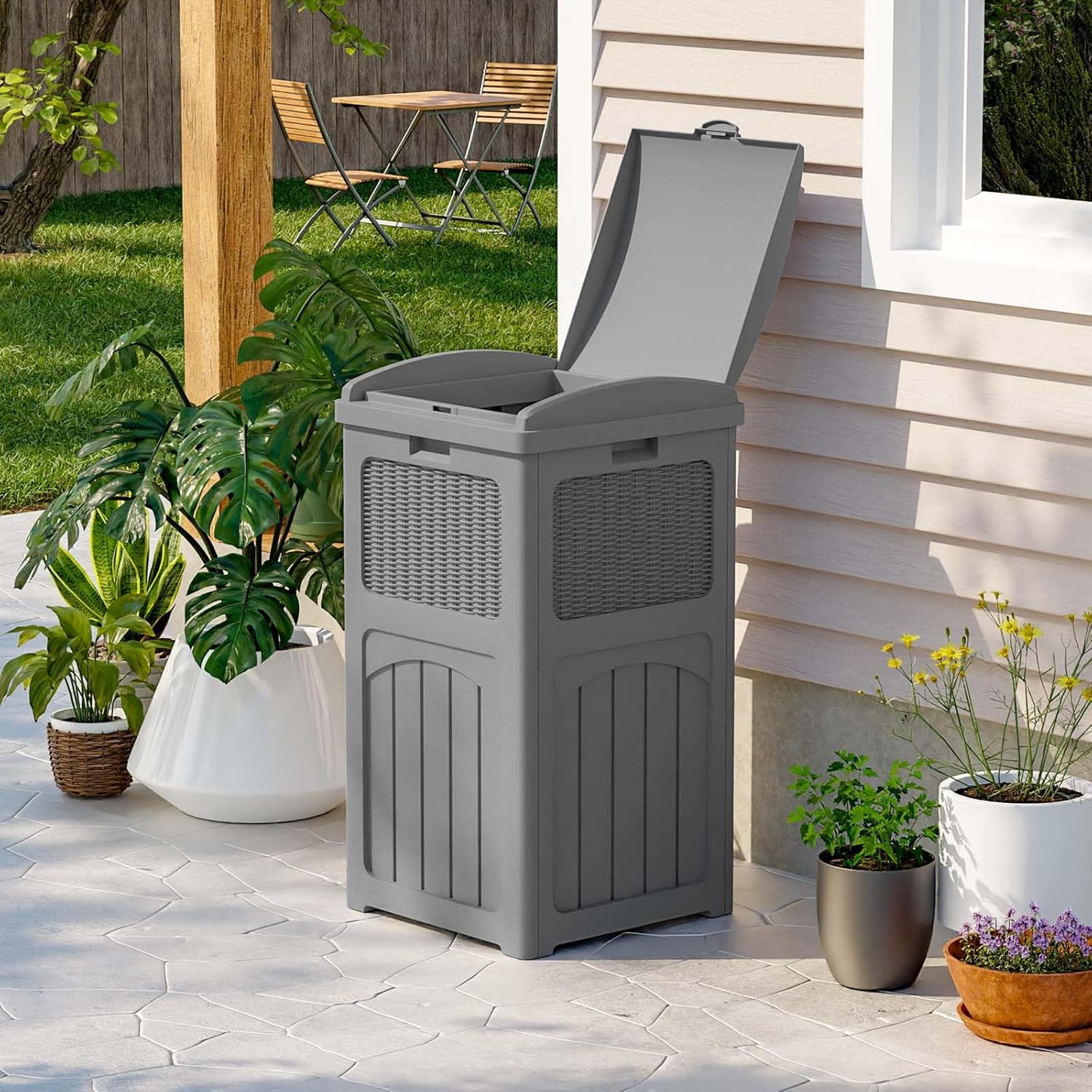 Patiowell 36 Gallon Outdoor Trash Can, Resin Outdoor Garbage Can with Lid for Patio, Backyard, Deck, Gray