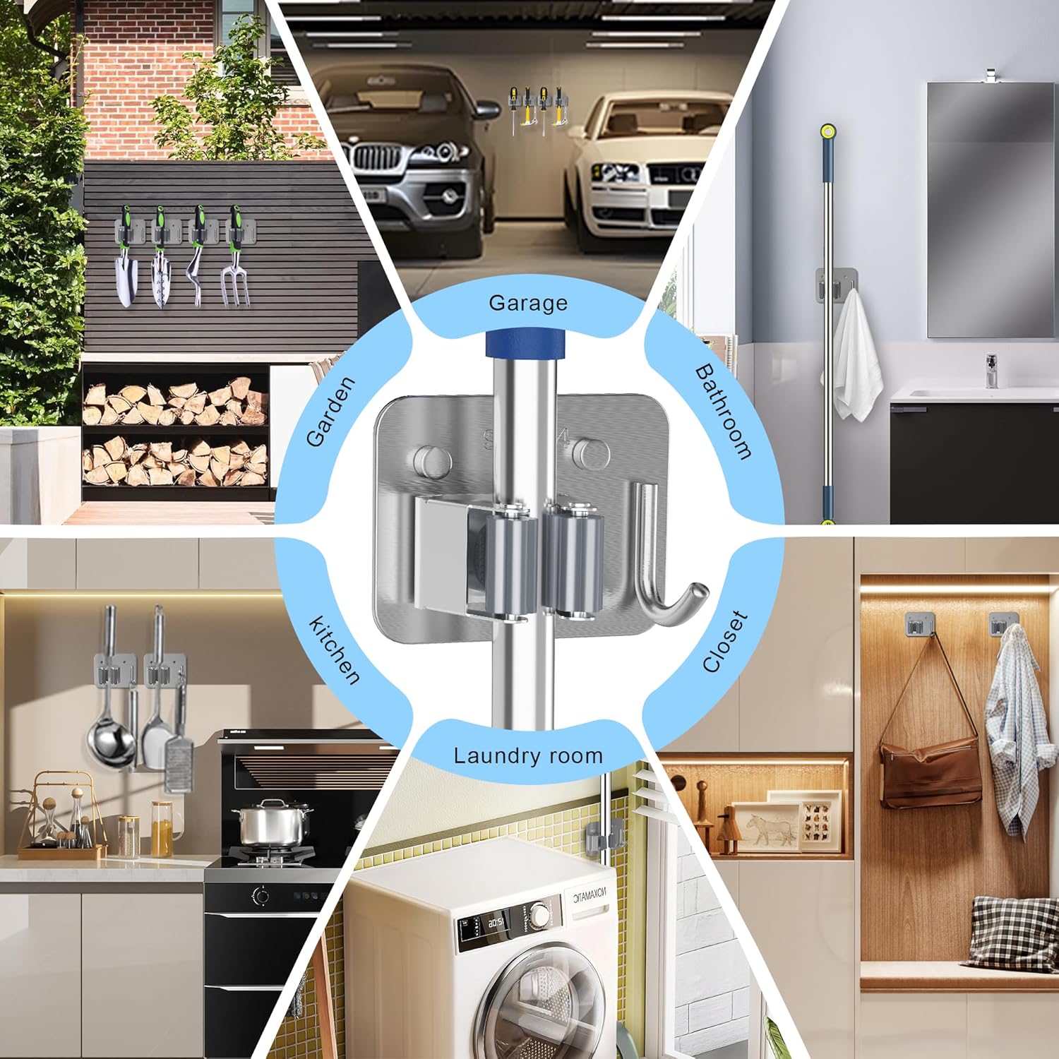 - Clever Hook Addition: Maximize your storage with the thoughtful extra hook on each mop hanger wall mount. Hang small items with ease and keep your cleaning tools, accessories, and gadgets neatly in place, so you're prepared for any clean-up