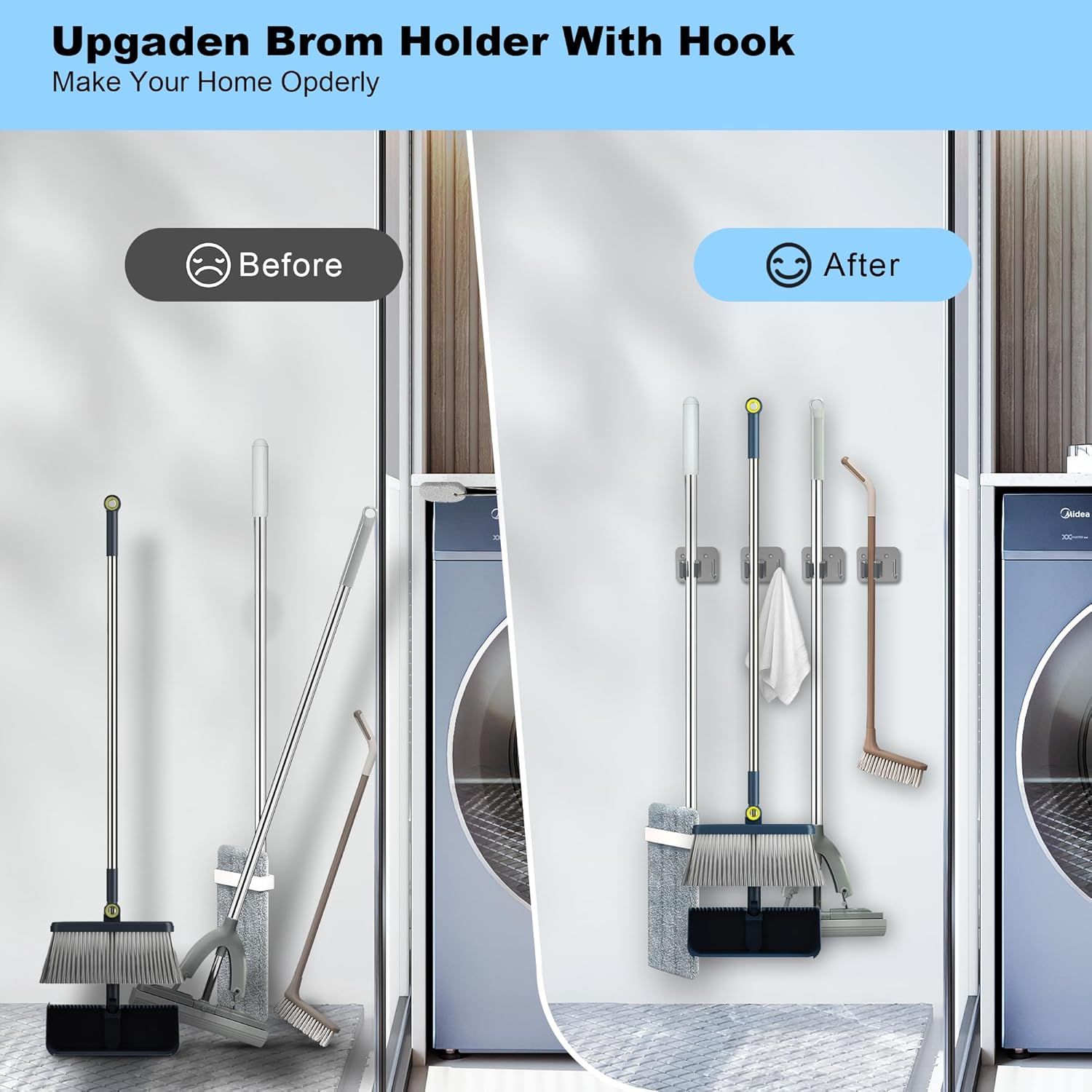 - Economical 4-Pack: This value set includes 4 broom organizer wall mount and 10 screws. Spread them across multiple rooms or create a dedicated cleaning station. The elegant silver finish complements any décor, offering both functionality and style