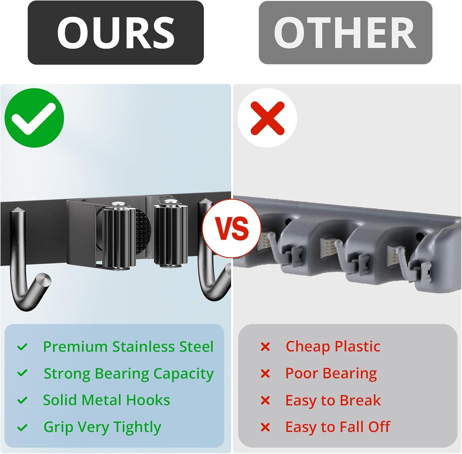 - 🏡【ORGANIZING & SAVING SPACE】Our mop and broom holder wall mount can keep messes organized in just 3 minutes. You can easily mount your broom, mops, rakes, brushes and any other tools, saving space for your kitchen, garage, garden, laundry, closets, bathroom, office, commercial, etc..