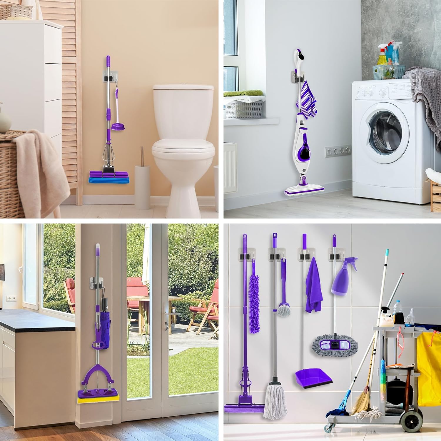 - Application - Various Usage of Mop Rack Wall Mount, Not Only for Hanging Mop and Broom, but Also for Hanging Different Kinds of Small Items Such as Repair Tools, Umbrellas, Kitchen Supplies.Toilet Brushes,etc