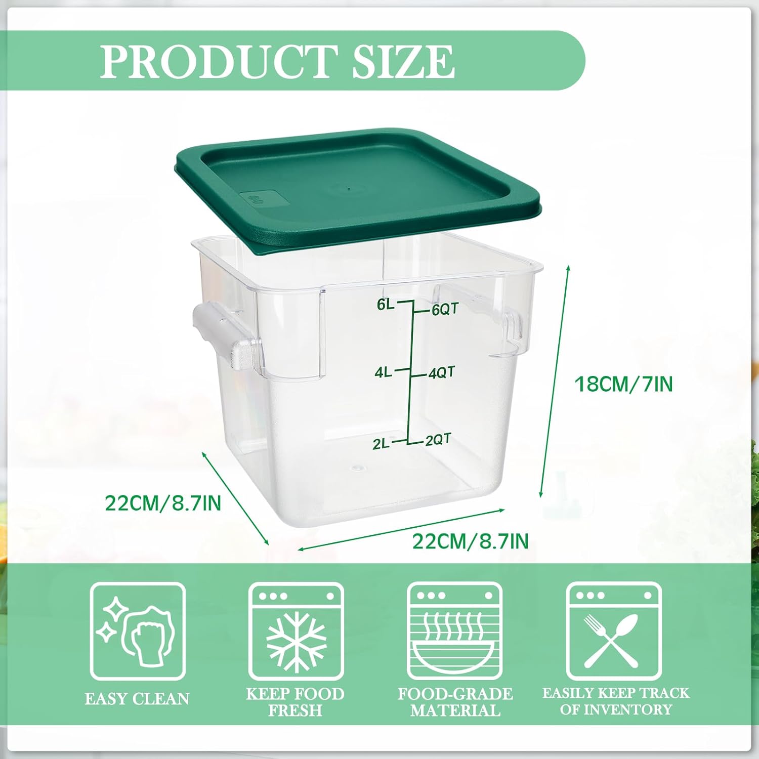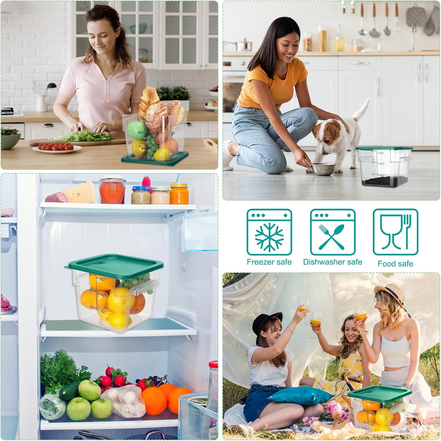 Lallisa 8 Pack 6 Qt Commercial Food Storage Containers with Lids Square Food Storage Container Clear Cereal Storage Containers for Kitchen Freezer Pantry Restaurant Flour Sugar(Green Lids)