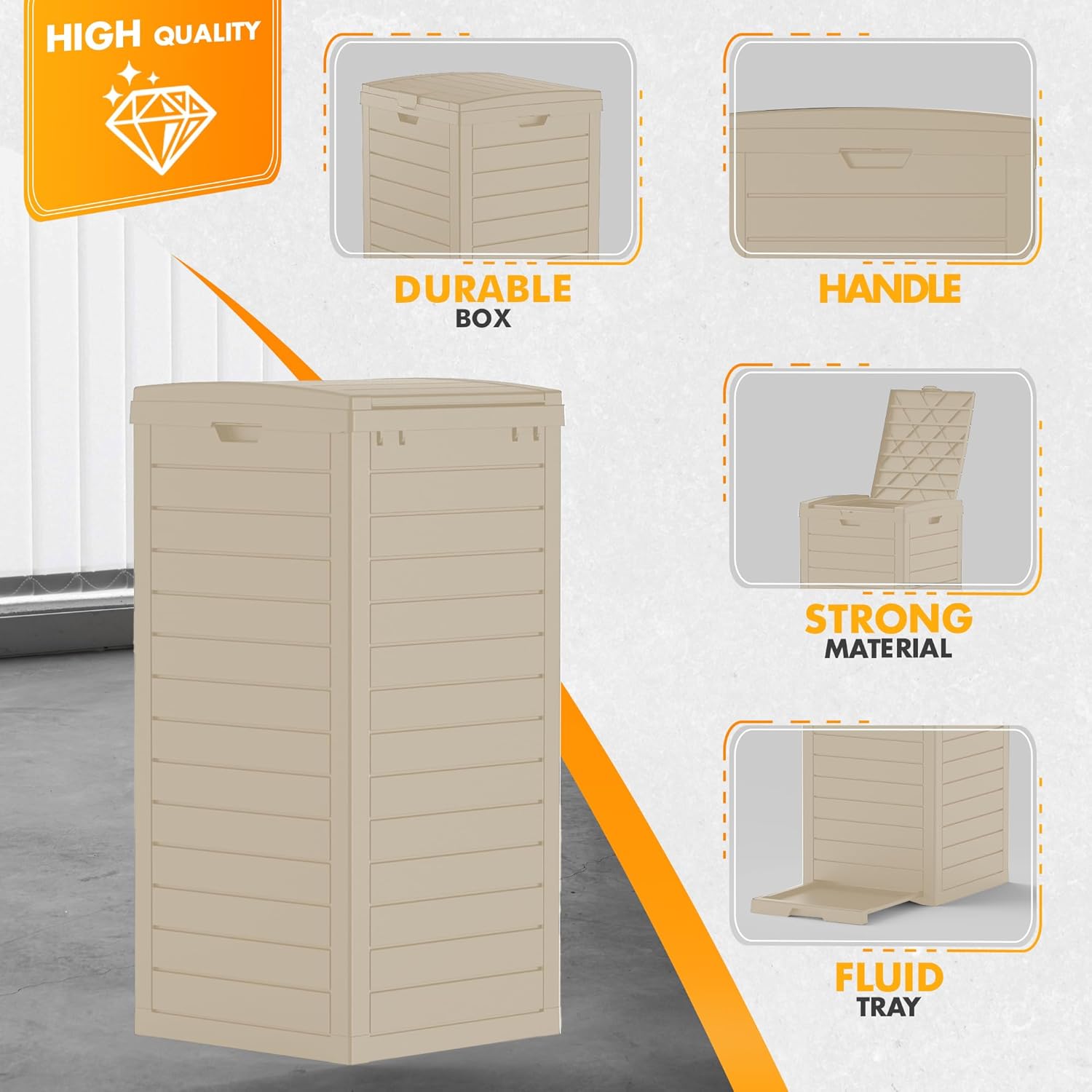 - All-Weather Resin Durability - UV-resistant, non-toxic resin withstands sun, rain, and temperature swings without cracking or fading, ensuring this outdoor trashcan functions flawlessly as both a kitchen trash can indoors and a durable outdoor solution.