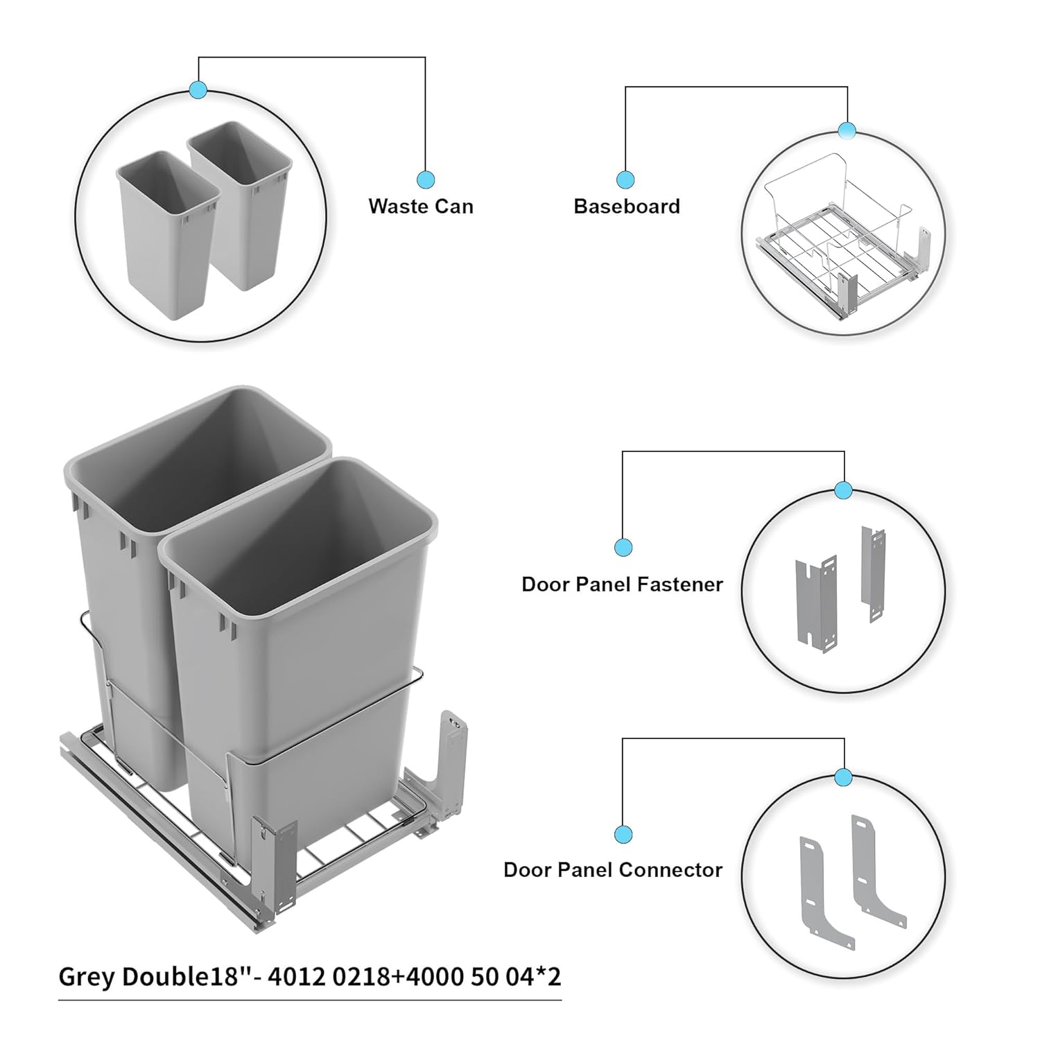 - EASY TO INSTALL: Easily mount the pullout sliders to the inside bottom of the cabinet, slip the fully assembled wastebasket pullout into the sliders and attach the front of wastebasket pullout to the cabinet door. All hardware and instructions are included.