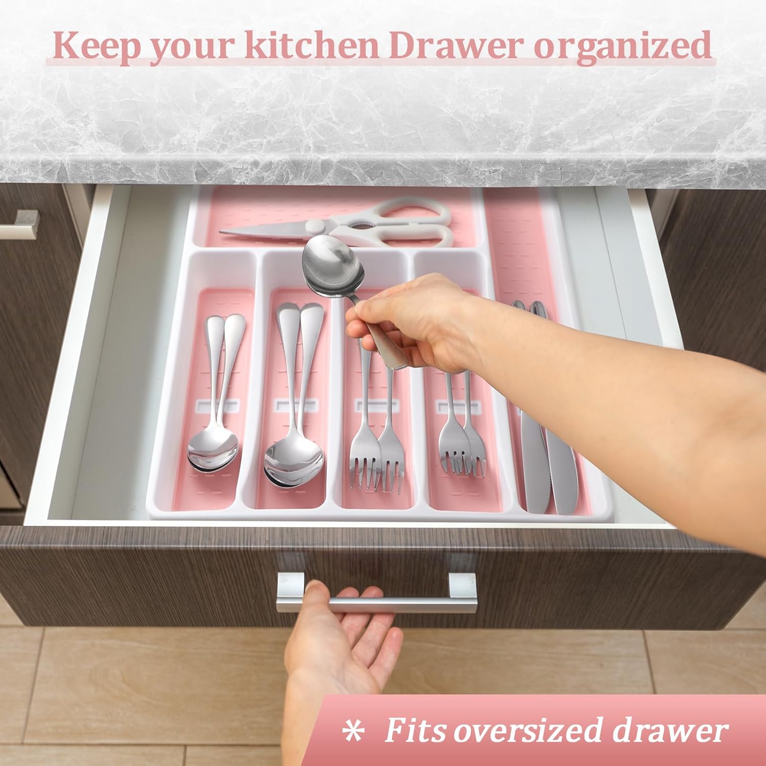 - Fits Well In OVERSIZED Drawer:This 6-compartment silverware tray measures 15.8"D x 12.8"W x 1.8"H,Perfect for oversized drawers,the compact design won't take up too much drawer space, and it will be a pleasure to open the drawer and see your cutlery organized in the tray.
