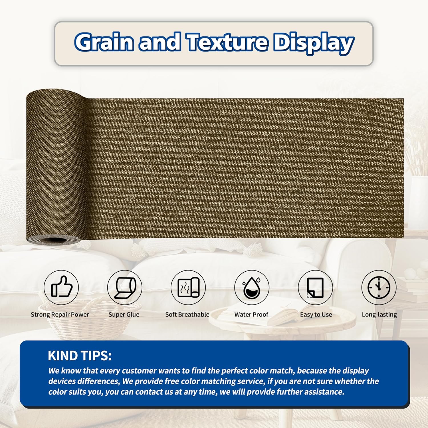 - Easy Application: Clean the damaged area, cut to the appropriate size, peel off the backing paper, and stick it to the damaged area. It only takes a few seconds to complete, and the repair effect is natural and tidy. Suitable for repairing linen products such as sofas, curtains, cushions, furniture, interior decorative fabrics, etc.