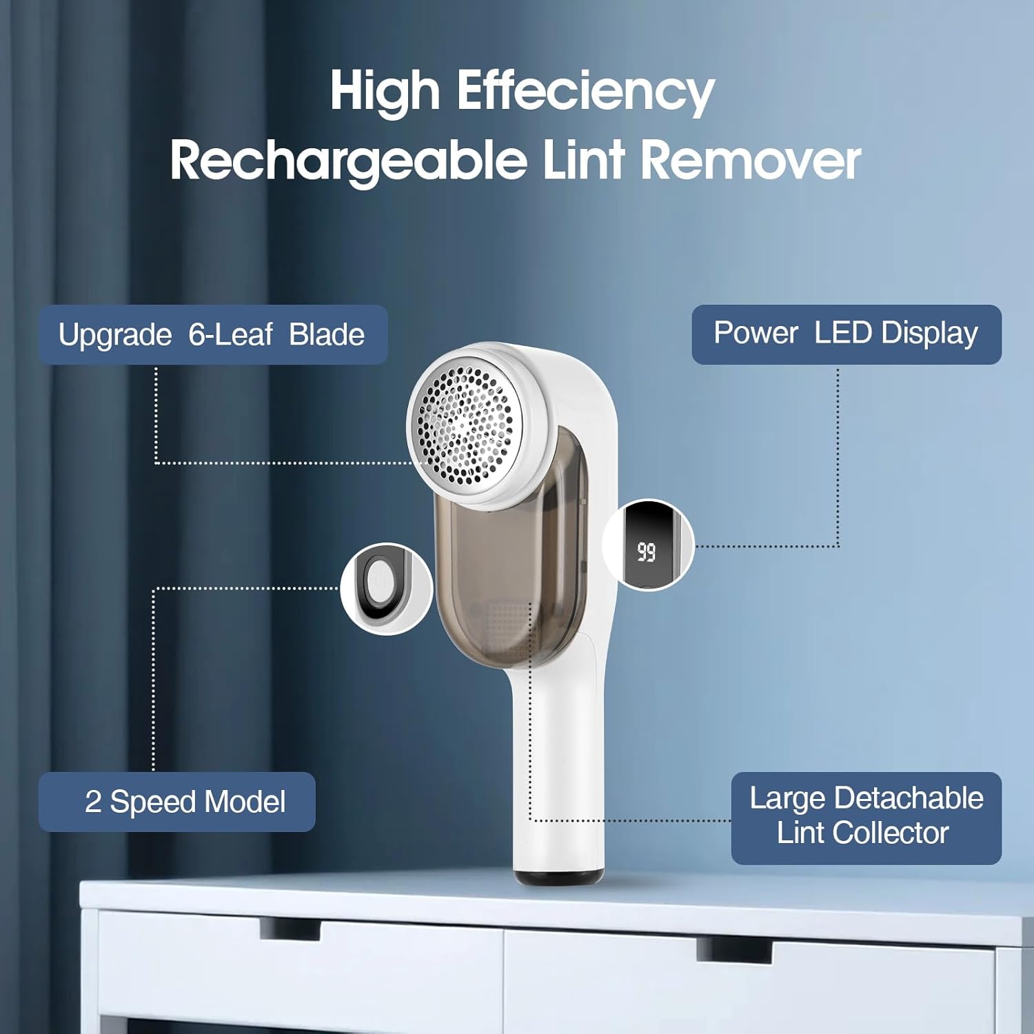 Rechargeable Electric Fabric Shaver Lint Remover with LED Display, Sweater Shaver 2- Speed to Remove Fuzz and Pill for Clothes, Furniture, Couch and Blanket(White)