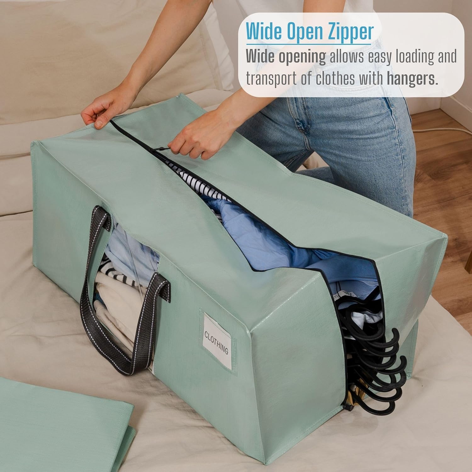 VENO 2 Pack Moving Bags for College, Heavy-Duty Storage Totes, Moving Boxes and Wardrobe Packing Supplies Alternative - Extra Large Durable Laundry Bags for Clothes (Shiny Light Green, 2 Pack)