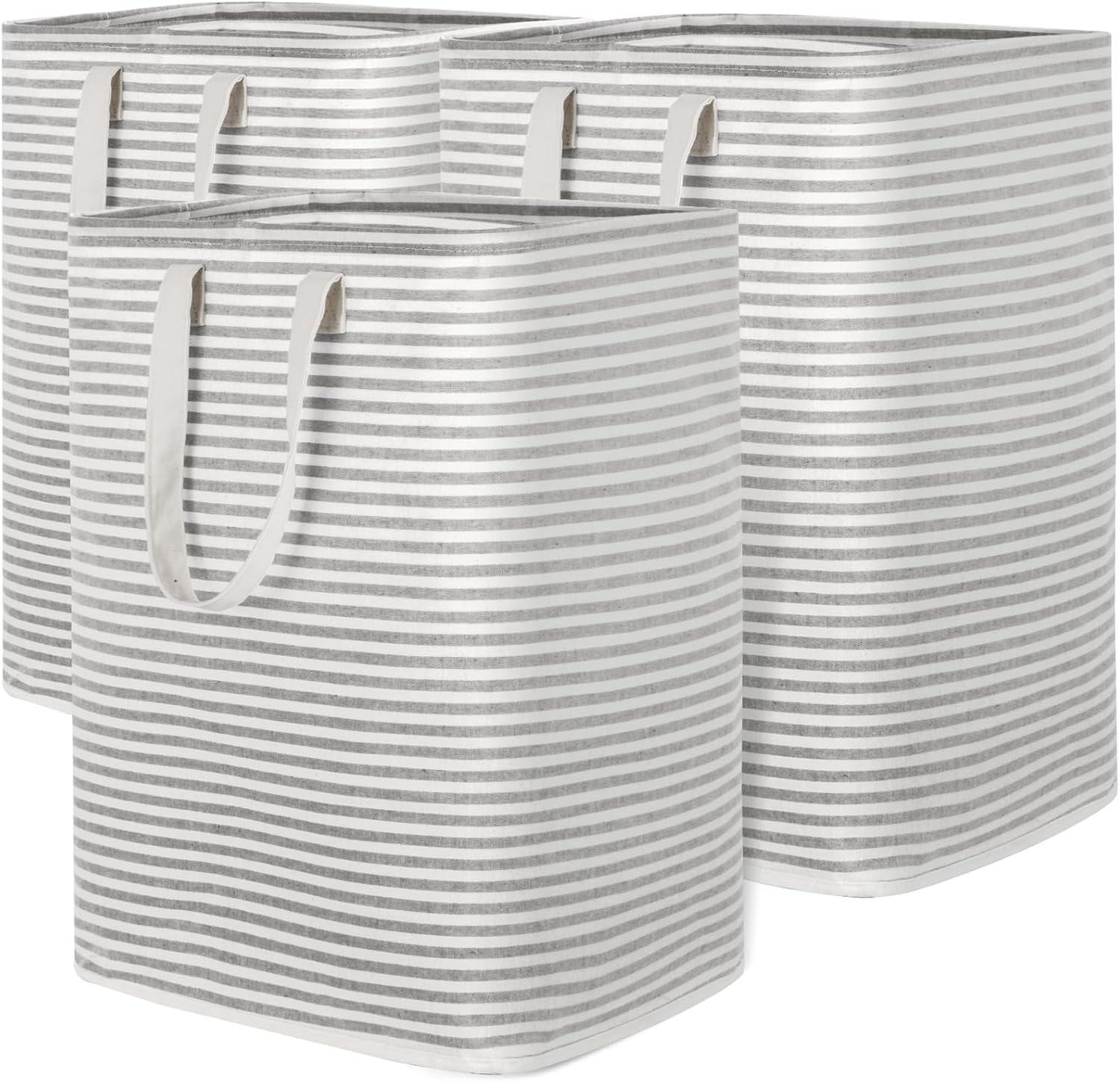 Lifewit 3 Pack Laundry Hamper Large Collapsible Laundry Baskets, Freestanding Waterproof Clothes Hamper with Easy Carry Handles in Laundry Room Bedroom Bathroom College Dorm for Adults, Grey, 3 x 90L