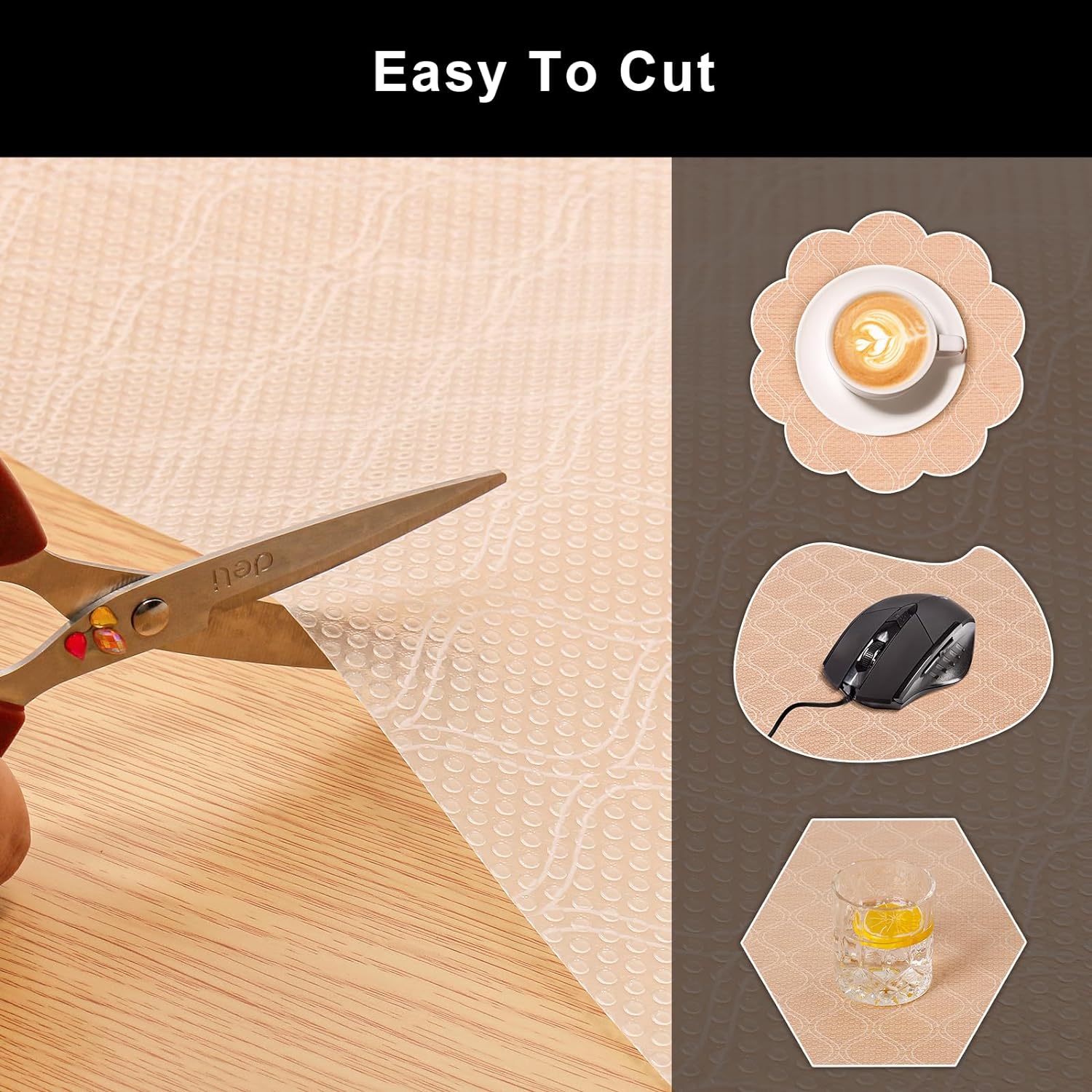 - EASY TO INSTALL AND CUT: Cabinet liner are easy to cut, you can easily cut them into the shape you want with scissors, then place the liners on a drawer or table and trim off the excess material. Our drawer liners are non-adhesive and easy to remove.