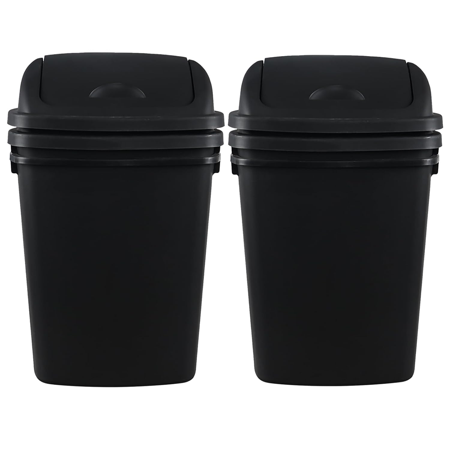 4 Pack 40 Liter Swing Lid Kitchen Garbage Can, Plastic Trash Can with Lid, Black