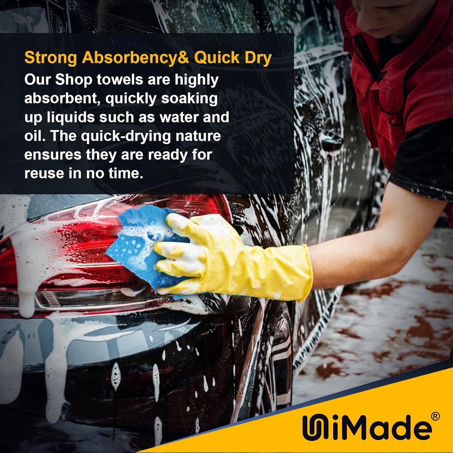 - Versatile Workshop Essential: UNIMADE shop rags find widespread use in automotive, workshops, garages, manufacturing facilities, housekeeping, Restaurant and diverse industrial settings, adeptly handling tasks like polishing, detailing, and various cleaning applications. Our cleaning towels are able to efficiently clean grease, oil, grime, fluid spills, tools, and parts, offering versatile and effective cleaning capabilities for various workshop needs