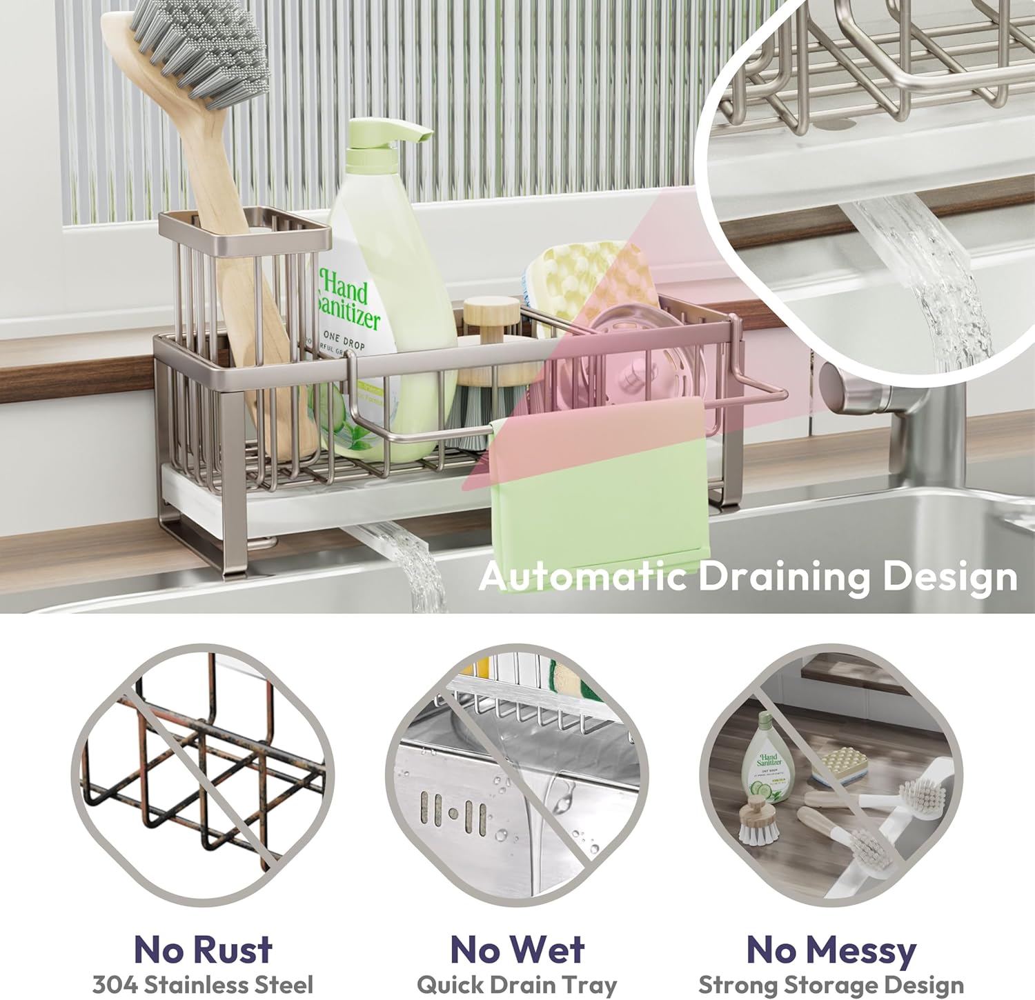 - [High Quality Stainless Steel Material]: Our kitchen sink organizer is made of 304 stainless steel, which is rustproof, waterproof and durable. The sink organizer sponge holder is very solid, and it can be rinsed directly, Don't worry about rust