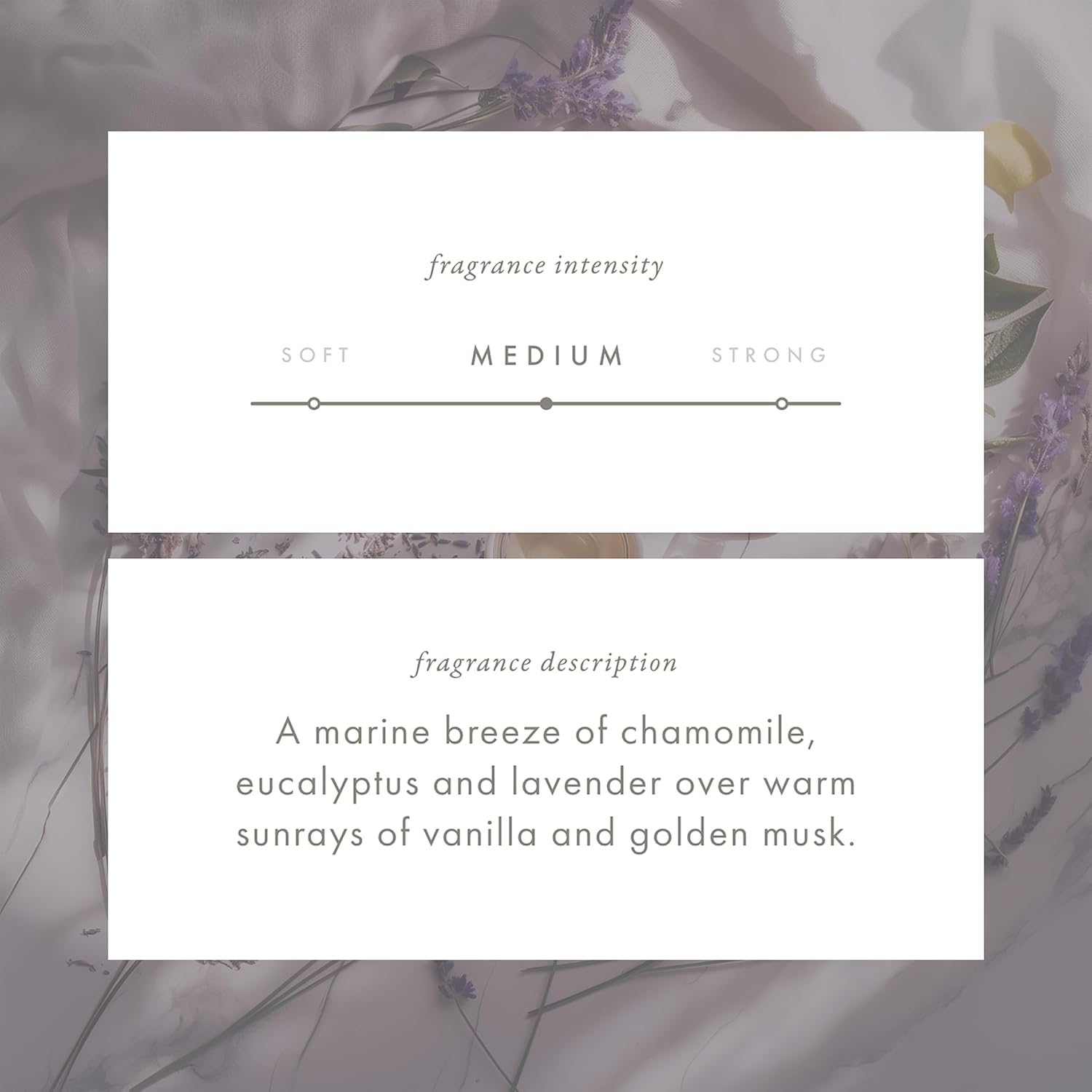 - COASTAL LAVENDER: A marine breeze of chamomile, eucalyptus and lavender over warm sunrays of vanilla and golden musk.