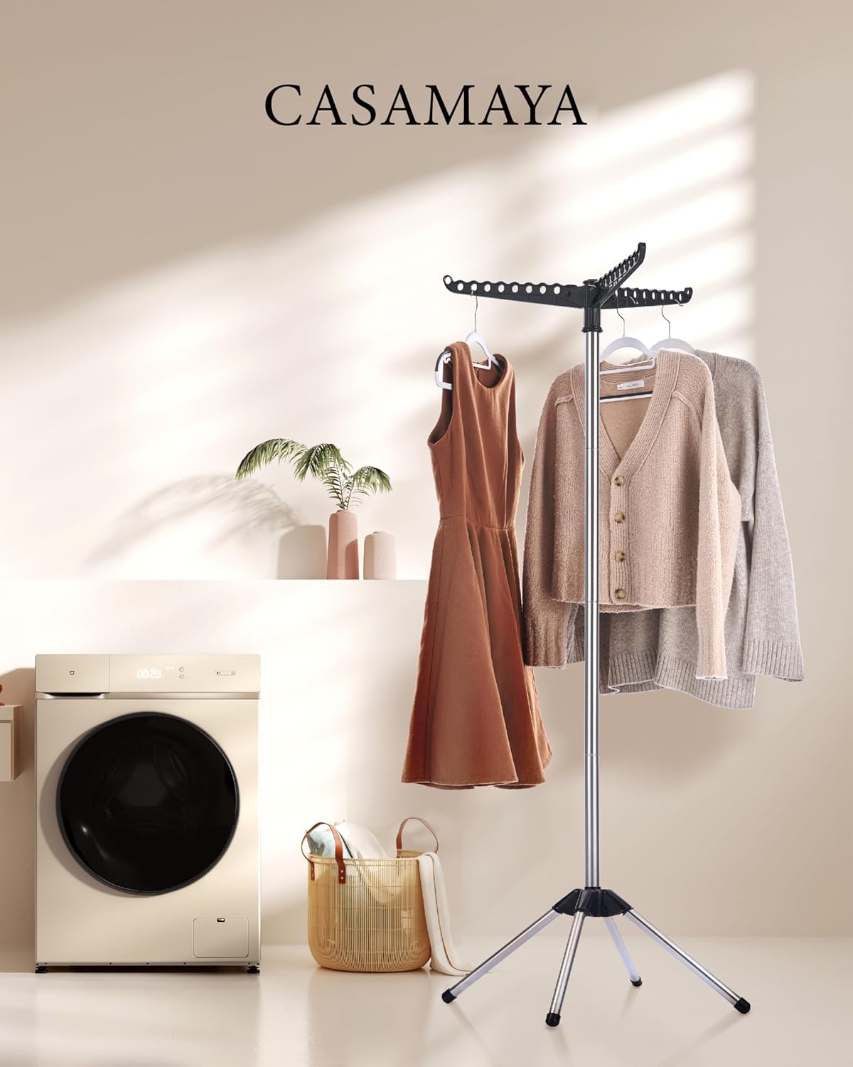 Clothes Drying Rack Foldable, 59 inch Tripod Laundry Drying Rack Indoor with Rotating Clothes Rail for 27 Pieces of Clothes, Space Saving, Stainless Steel, Black and Silver CDR001B01
