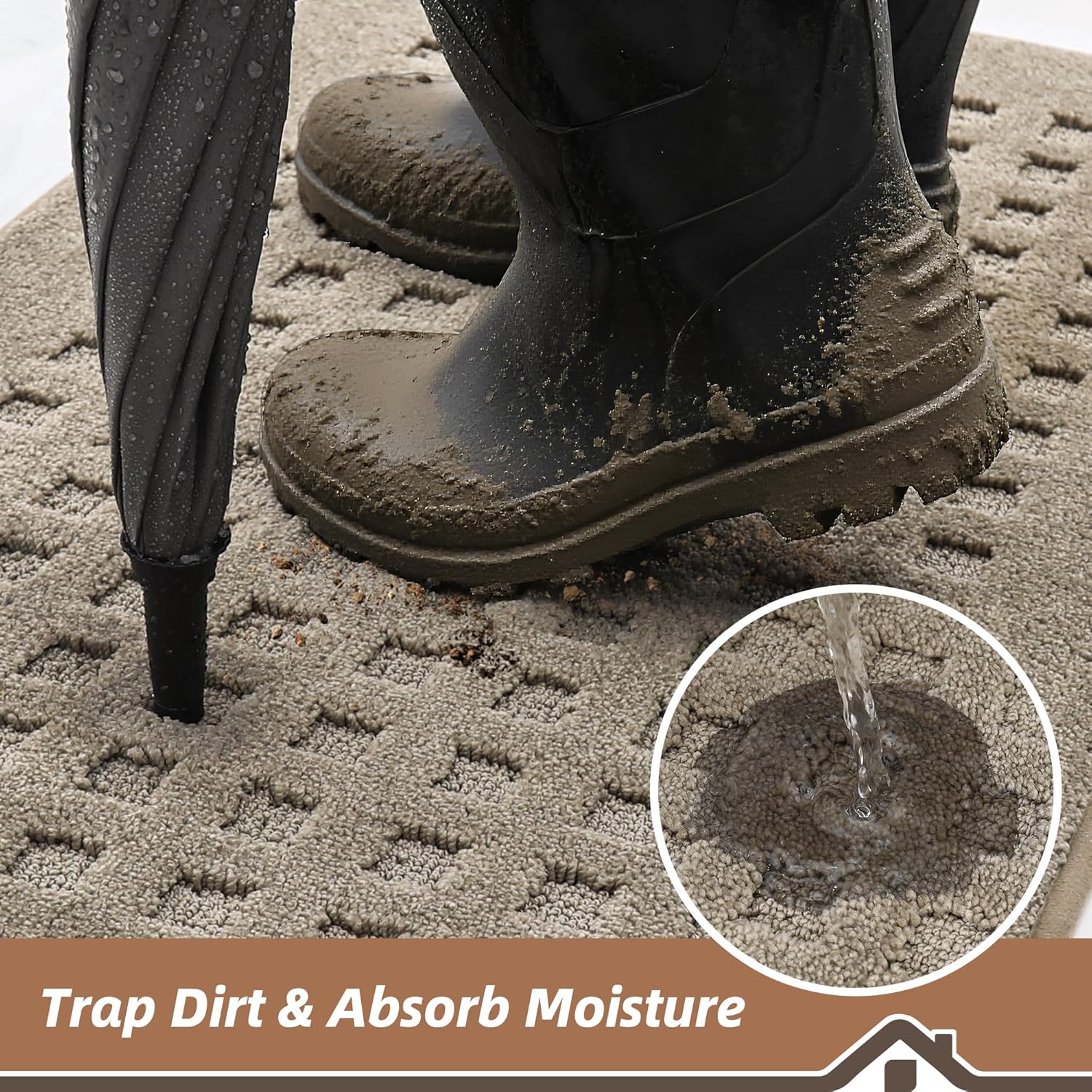 BEQHAUSE Waffle Door Mats Indoor 24"x36", Dog Mat for Muddy Paws Absorbent and Dirt Resist Floor Mats Non-Slip Washable Rugs for Entryway, Welcome Mat for Front Back Door, Muddy Wet Shoes, Beige