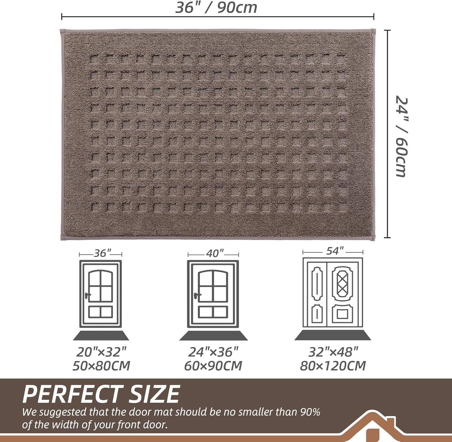 - Stylish and Low Profile Design: Fashionable Waffle patterns are suitable for most kinds of home dรฉcor. Our doormats measure 24" x 36" x 0.45", low-profile design and reinforced overlock edges to ensure that doors won't get stuck or the door rug go curling. Note: Please confirm the height of the door gap before purchasing