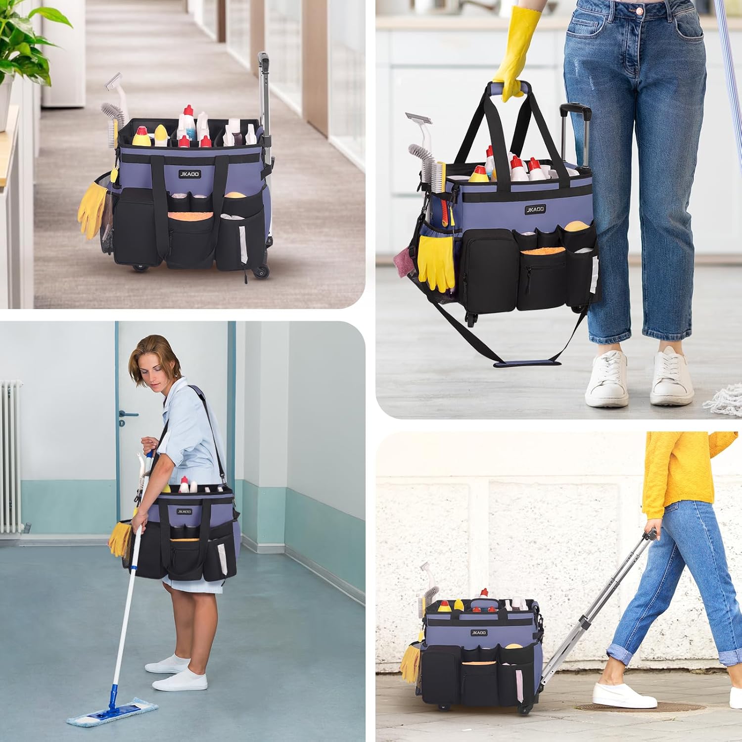 Large Rolling Cleaning Caddy Bag with Detachable Trolley, Waterproof Cleaning Caddy on Wheels for Housekeepers, Cleaning Cart Supplies Organizer for Home,Car,Office,Picnic (Denim Blue)(InPatent)