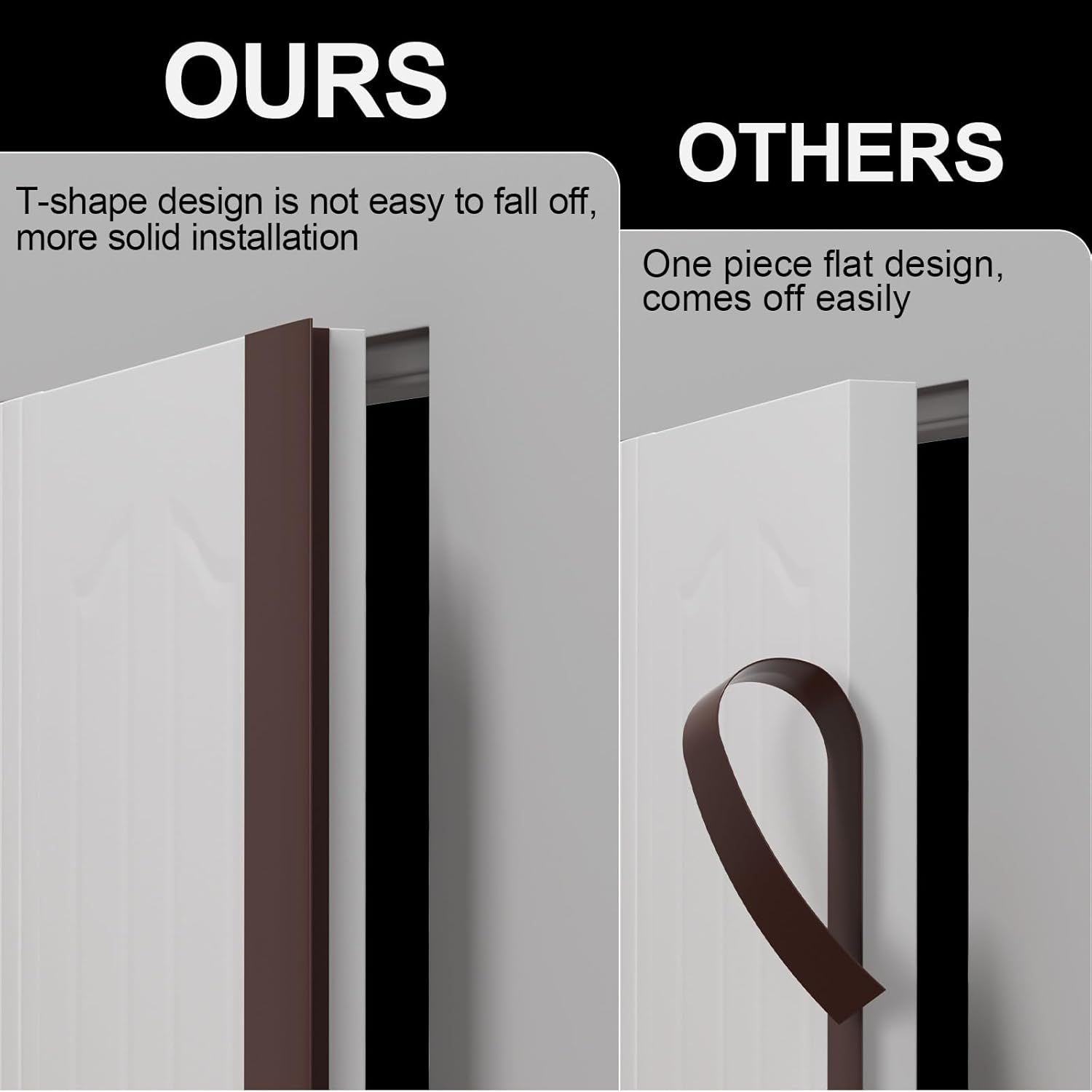 - [WINDPROOF & SOUNDPROOOF] Elvone's silicone sealing strips are designed to fit around the edges of doors and windows on one side, with the T-shaped portion fitting around the door or window gap, and the other side without adhesive backing to insulate against airflow, dust and noise. Create a more comfortable and quieter living space.