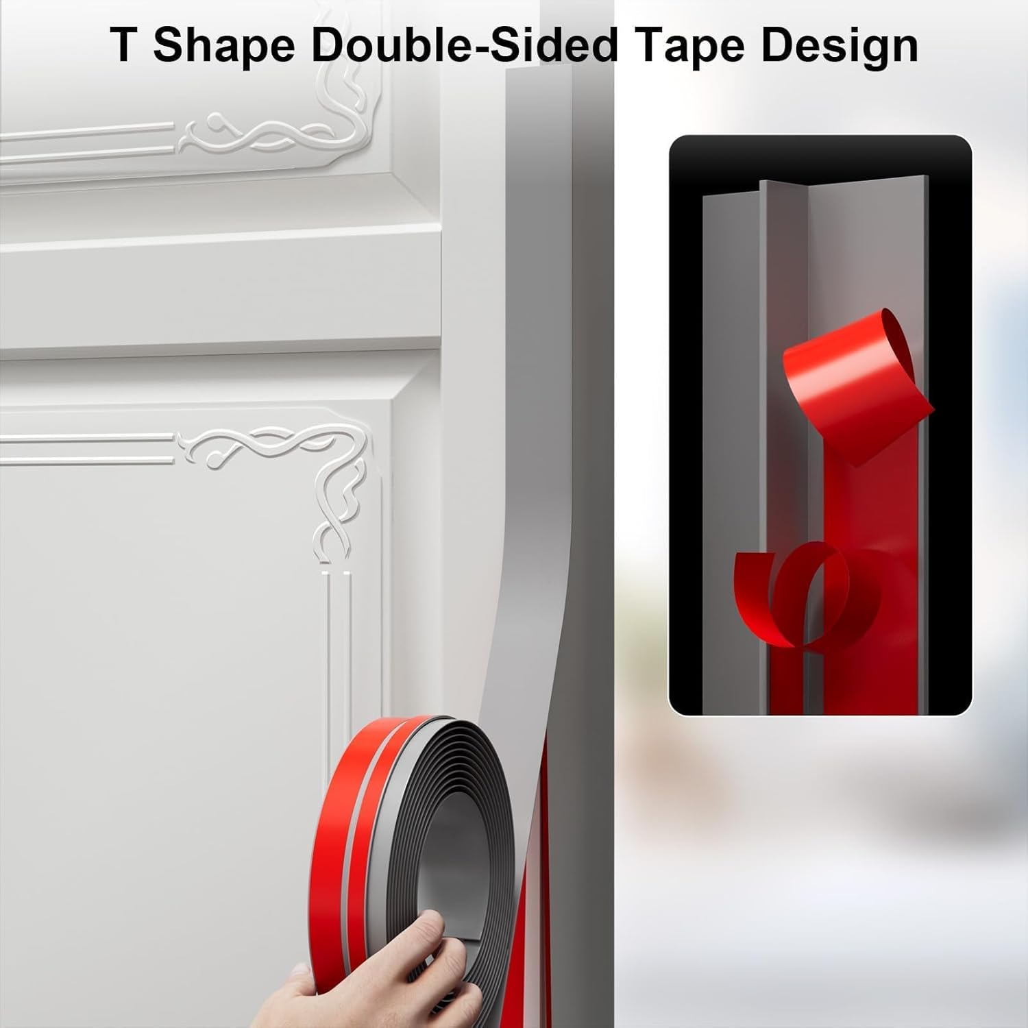 - [WINDPROOF & SOUNDPROOOF] Elvone's silicone sealing strips are designed to fit around the edges of doors and windows on one side, with the T-shaped portion fitting around the door or window gap, and the other side without adhesive backing to insulate against airflow, dust and noise. Create a more comfortable and quieter living space.