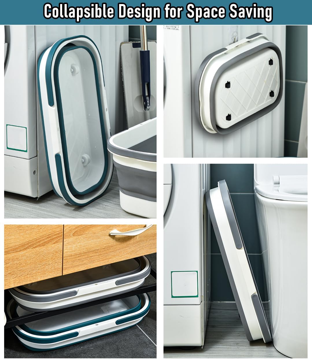 - PRODUCTS SUPPORT: The portable basin tub foldable size is about 17.3x9.5x2.4 inches, weight is about 1.1 lbs. The basin bucket is used for multiple dust mops, as long as it can be put into the bucket. Before you purchase it, make sure the size fit your needs. If you have any issues, no worry to let us know.