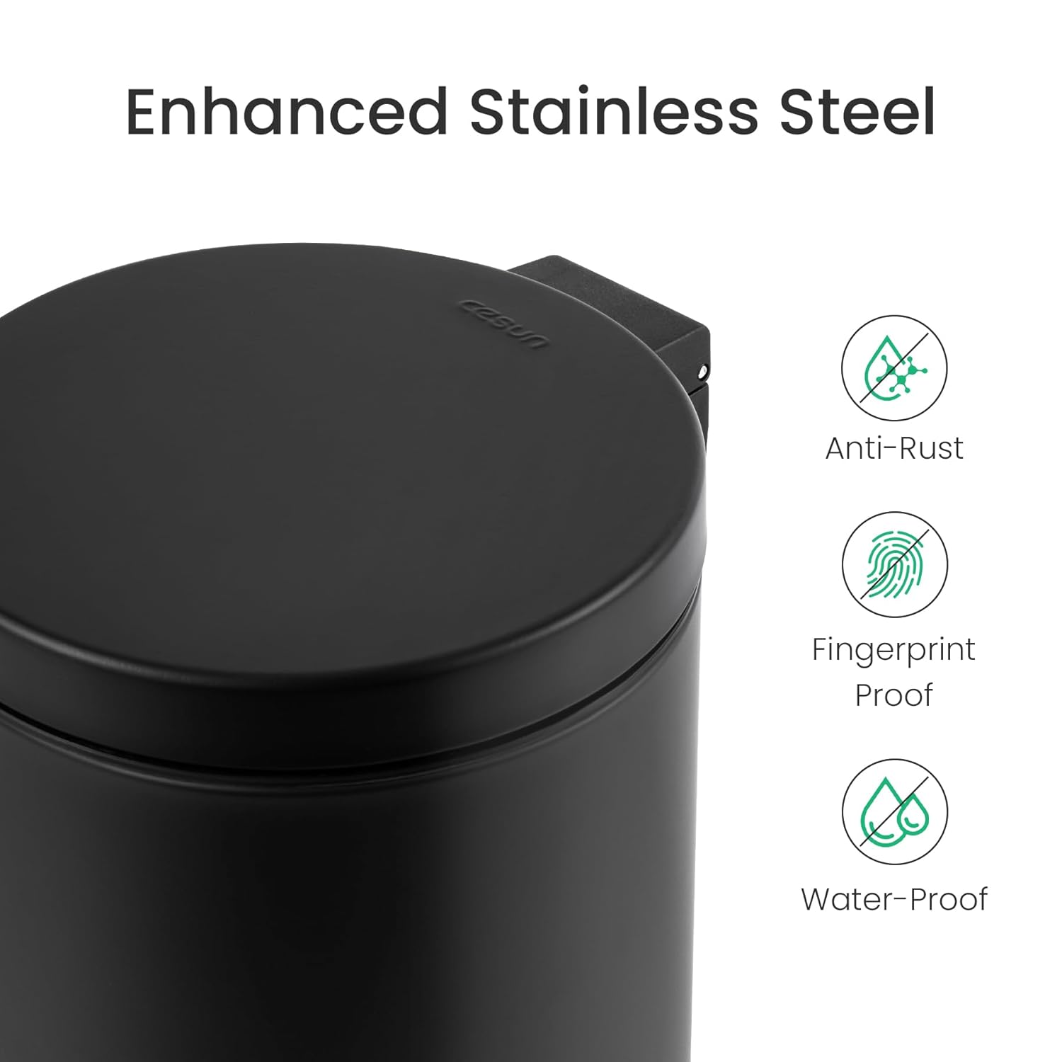 Cesun 1.2 Gallons Small Black Trash Can, Bathroom Garbage Can with Lid and Foot Pedal, Mini Round Wastebasket for Bathroom, Bedroom, Office, 4.5 Liters / 1.2 Gallons, Matte Black