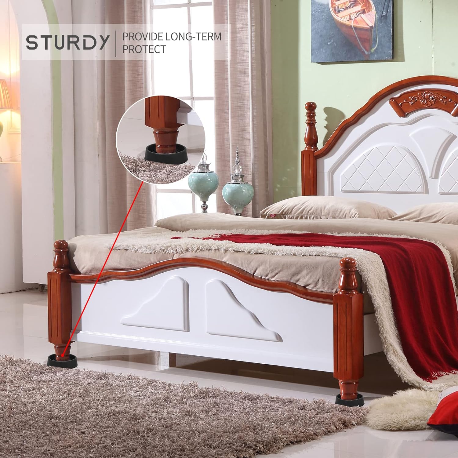 - ENOUGH SIZE - 4 Inch black round rubber caster cups, Each round rubber casters cup is large enough to hold the legs of most furniture, and the classic black perfectly with the wood to make the whole look match.
