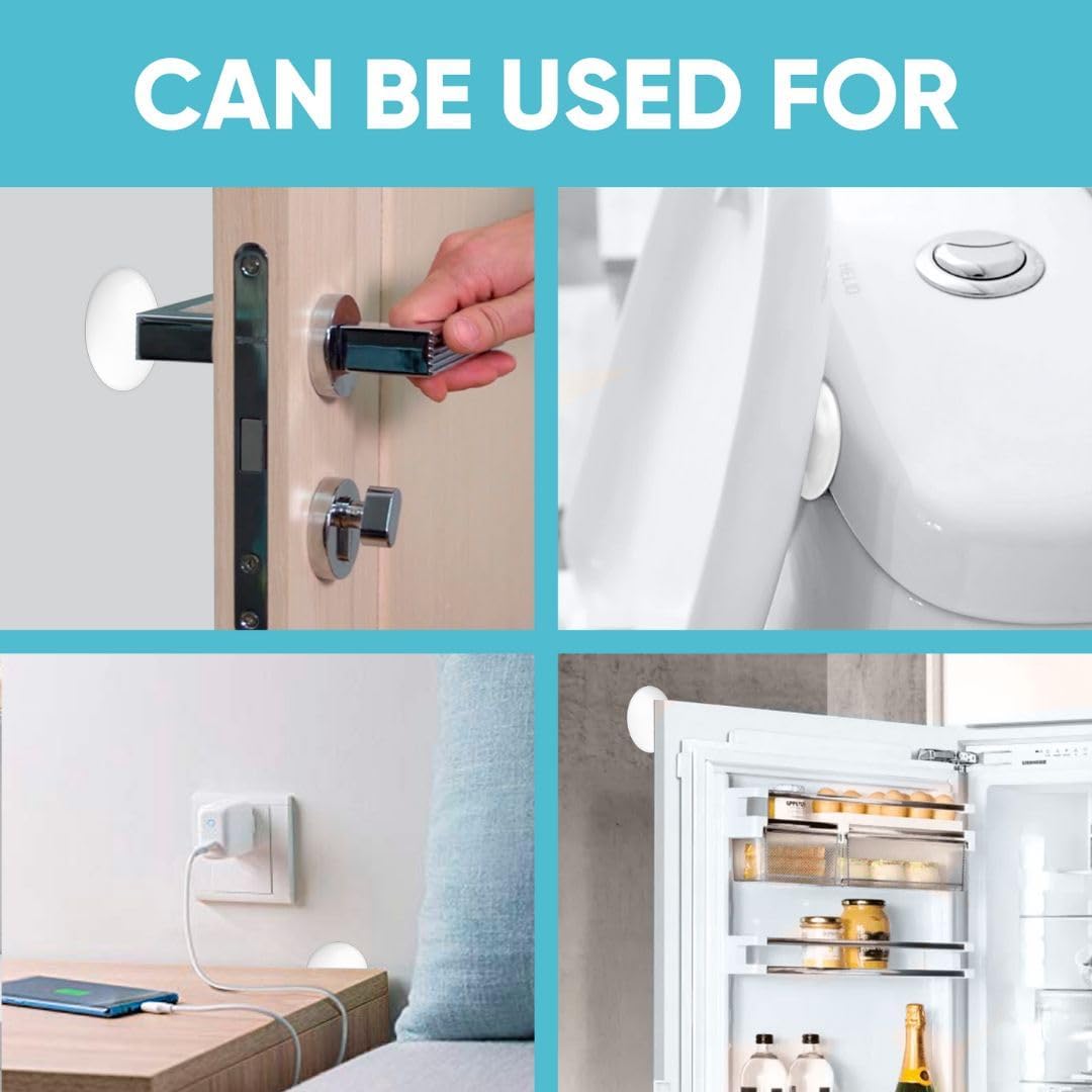 - VERSATILE USE: This set of 5-door slam stoppers is great for fridge or cabinet doors, table corners, headboards, and toilet seats. Use the door guards to protect against the damage caused by the doorknob or door handle slamming. Or use the clear door stopper as rubber feet for different appliances and furniture.